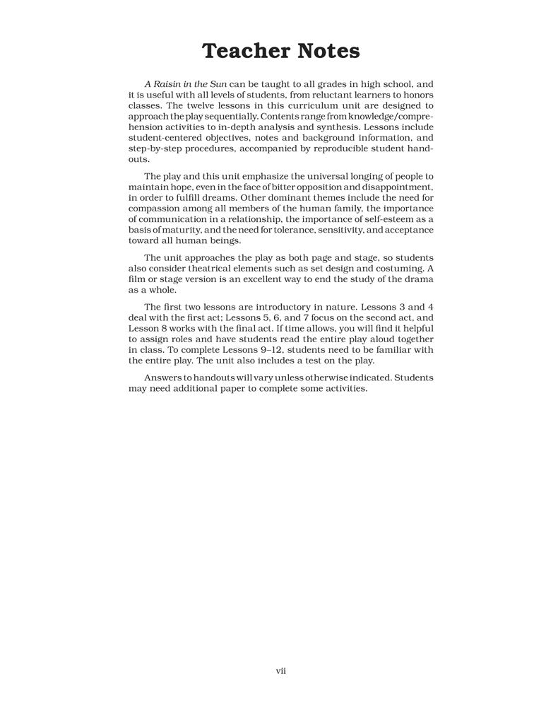Print Book: Spiral-bound, 8 x 11 inches.A Raisin in the Sun Curriculum Unit