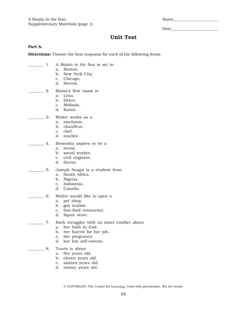 A Raisin in the Sun Curriculum Unit - A Raisin in the Sun Curriculum Unit Book Download (4S1328DL) is backordered and will ship as soon as it is back in stock.