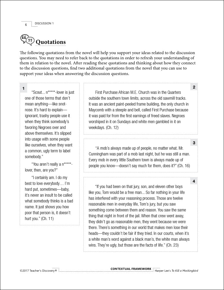 Contextual Framework: Harper Lee's To Kill a Mockingbird Book