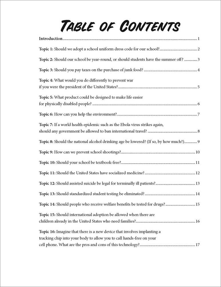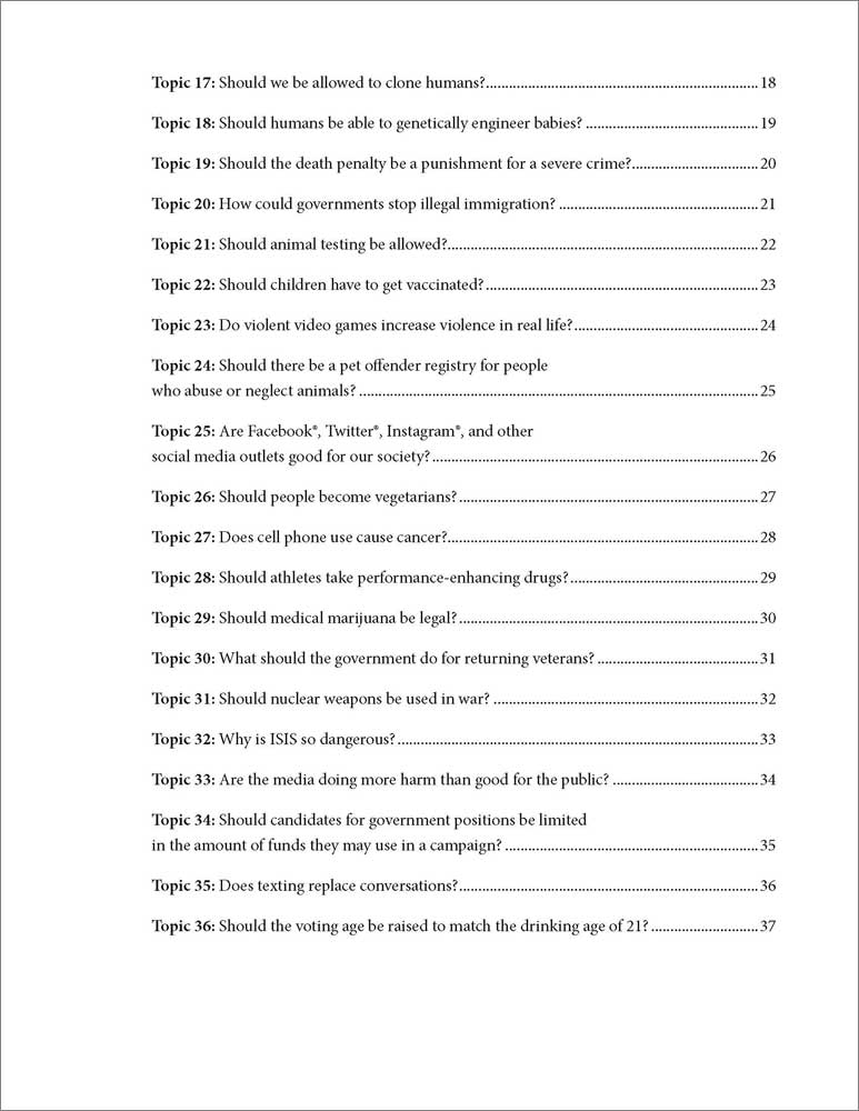 Encourage friendly debate and articulate arguments among your students with these relevant, modern prompts—everything from school dress code to social media, censorship to medical marijuana, and much more. Take controversial topics and break them down into appropriate conversation with critical thinking questions and pre-written tasks to help your students achieve strong, researched opinions.