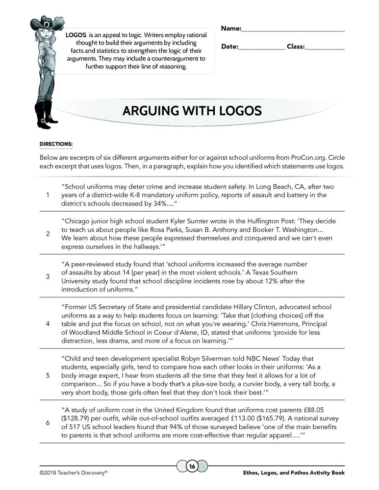 Ethos, Logos, and Pathos Activity Book