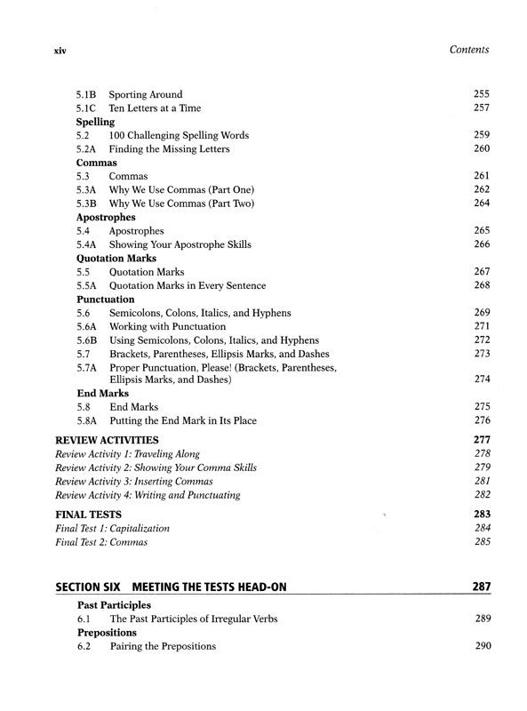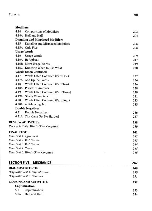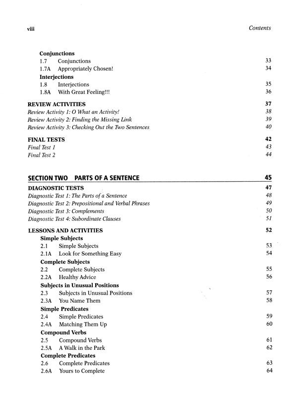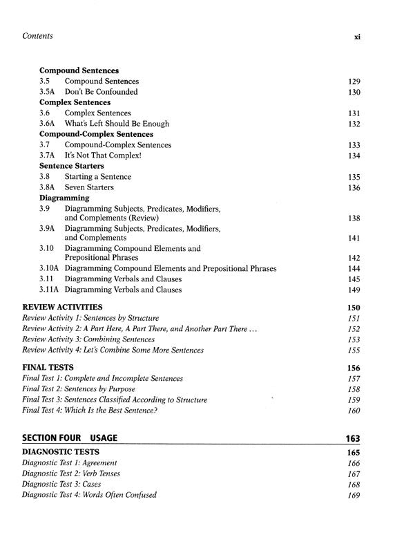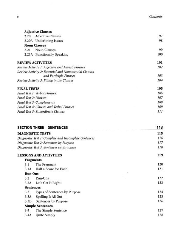 These lessons and the many activities include 15 diagnostic tests, 15 section-review activities, 18 final tests, and over 100 other creative reinforcement activities, including diagramming.