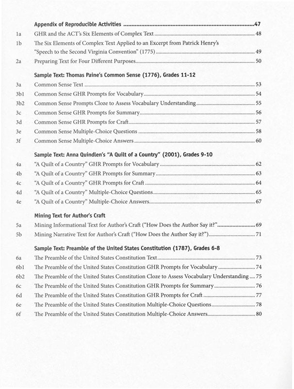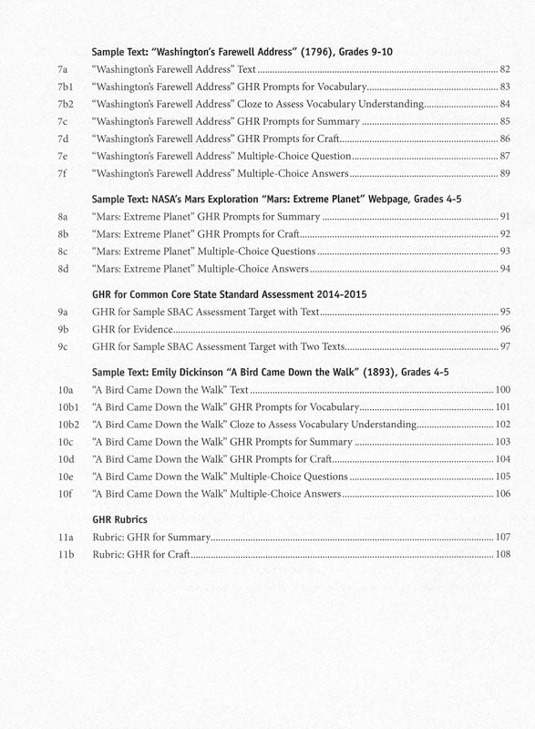Examples use historical texts. Rubrics are provided for assessments. Includes 90 pages of reproducible lessons and meets Common Core State Standards.