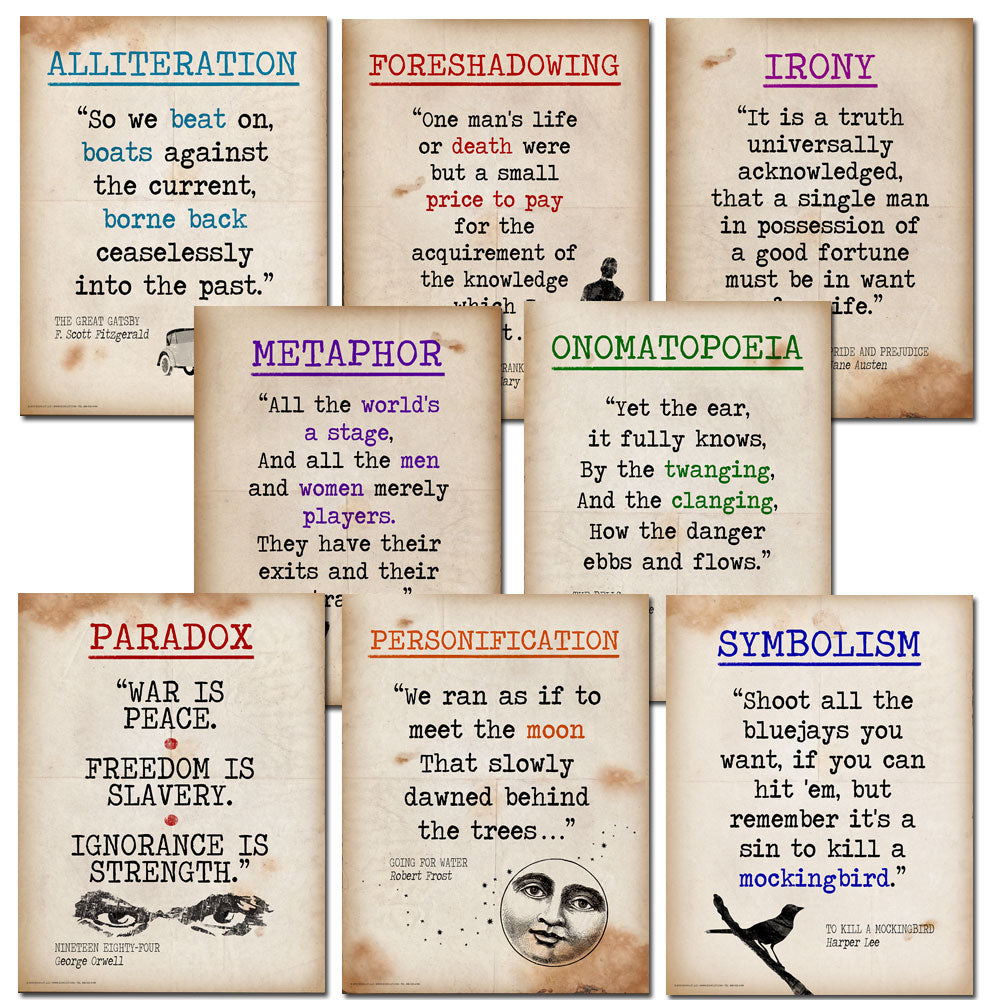 Literary Terms Mini Quote Posters—Set of 8 Posters