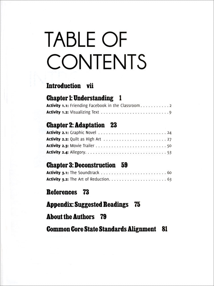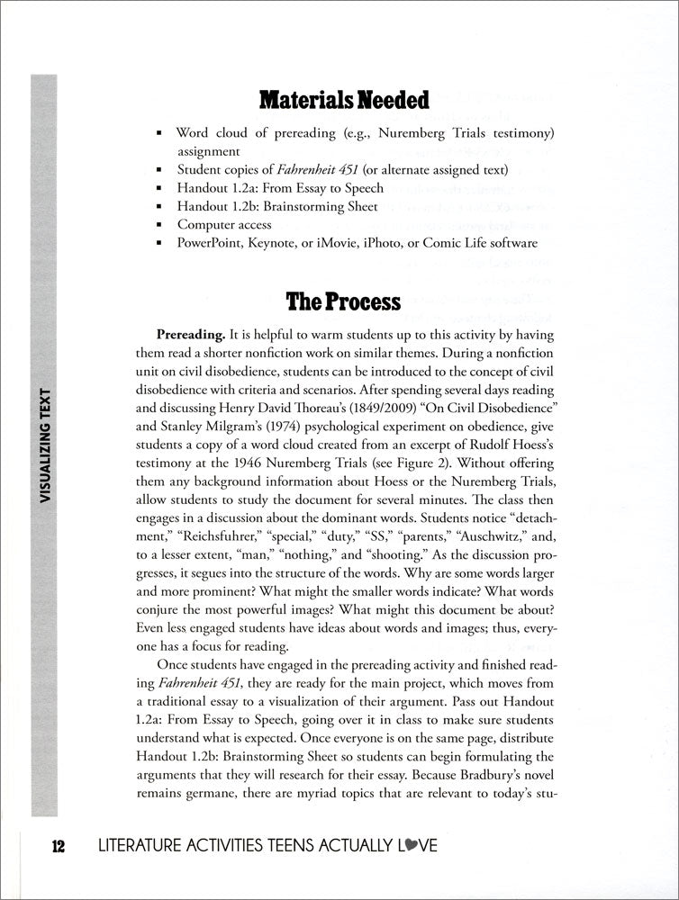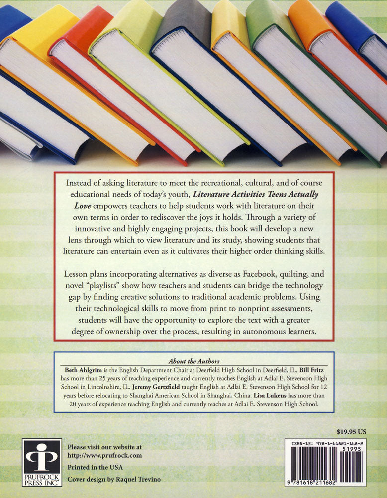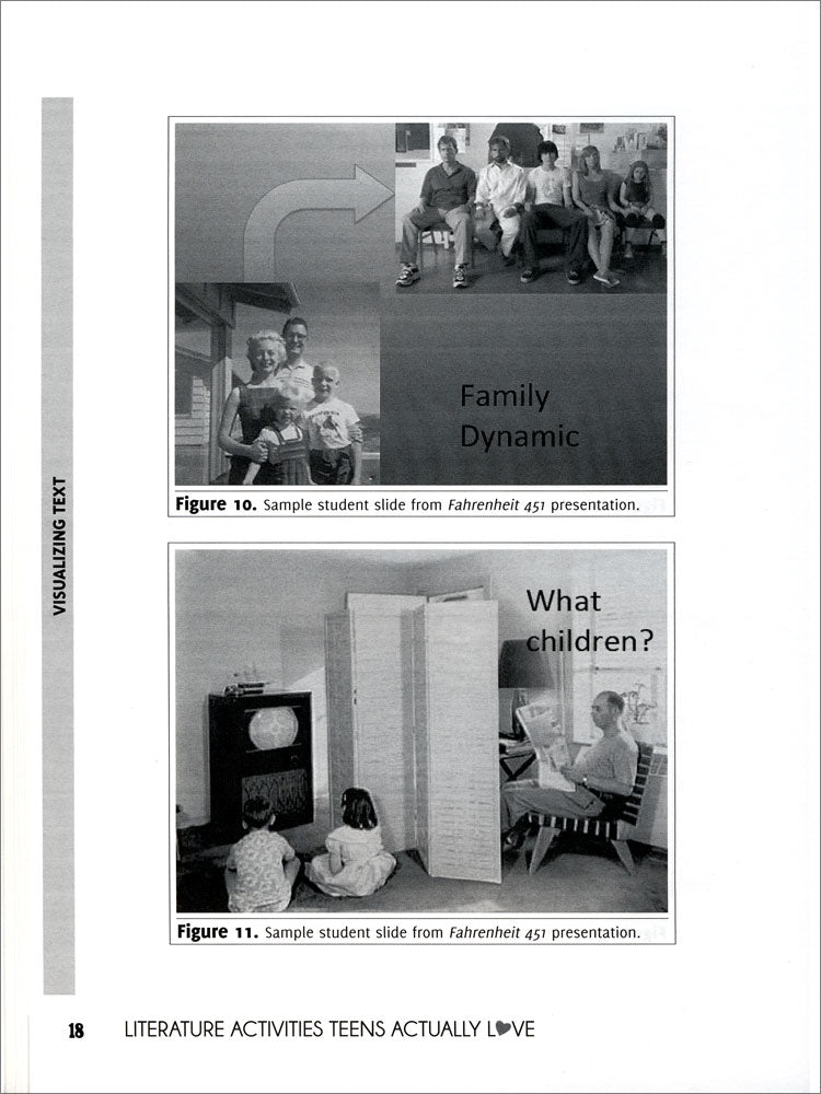 Through a variety of highly engaging projects, this book develops a way for students to view literature and its study, with activities that encourage higher order thinking skills and strategies. The easy-to-use lesson plans incorporate alternatives as diverse as Facebook, quilting, and novel “playlist” and show how you and students can bridge the technology gap by finding creative solutions. ©2014, 85 pages, reproducible, softbound, grades 9-12.