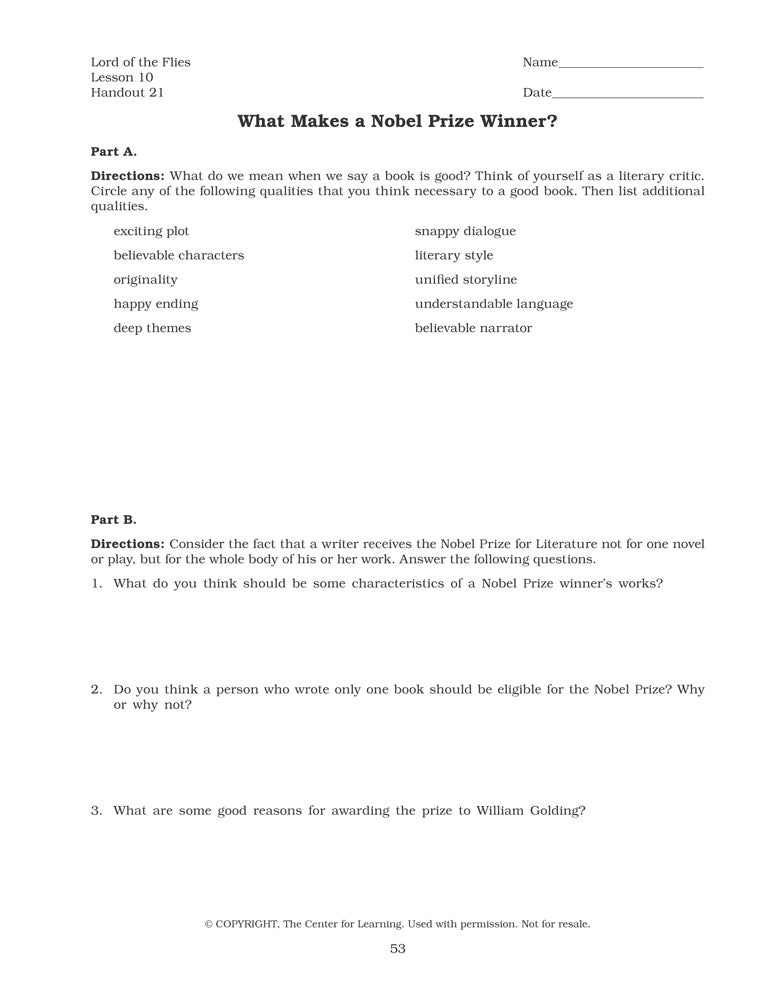 Lord of the Flies Teaching Unit - 10 Lesson Plans Plus 23 Student Handouts and Activities