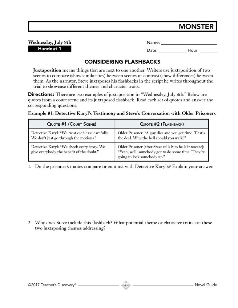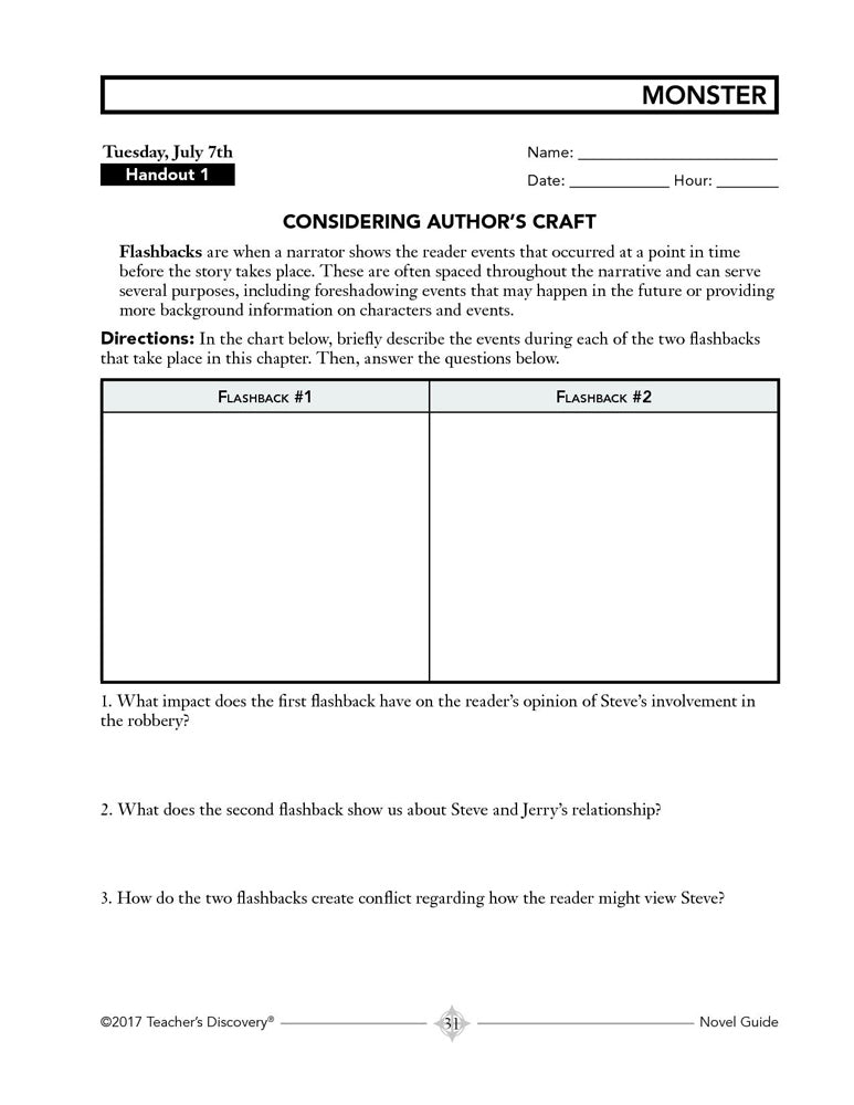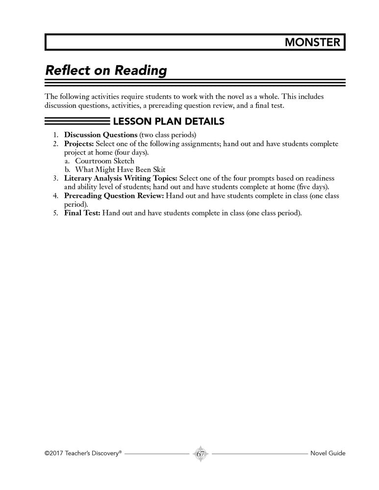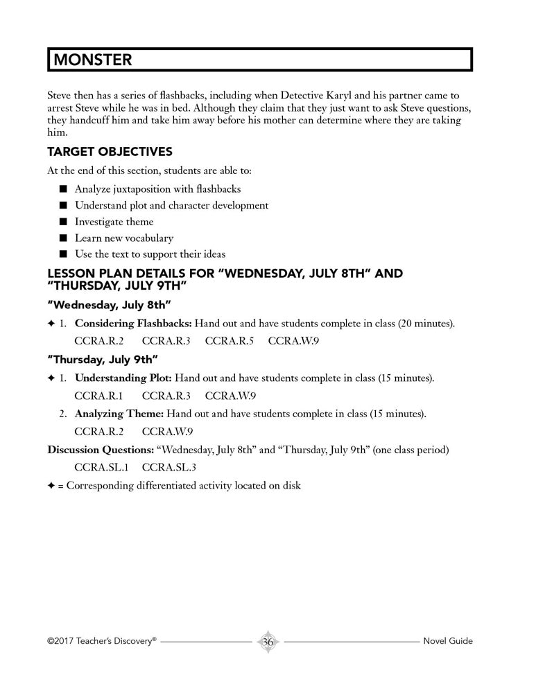 Monster Novel Guide Teaching Unit with Lesson Plans, Activities, Discussion Questions, and Much More