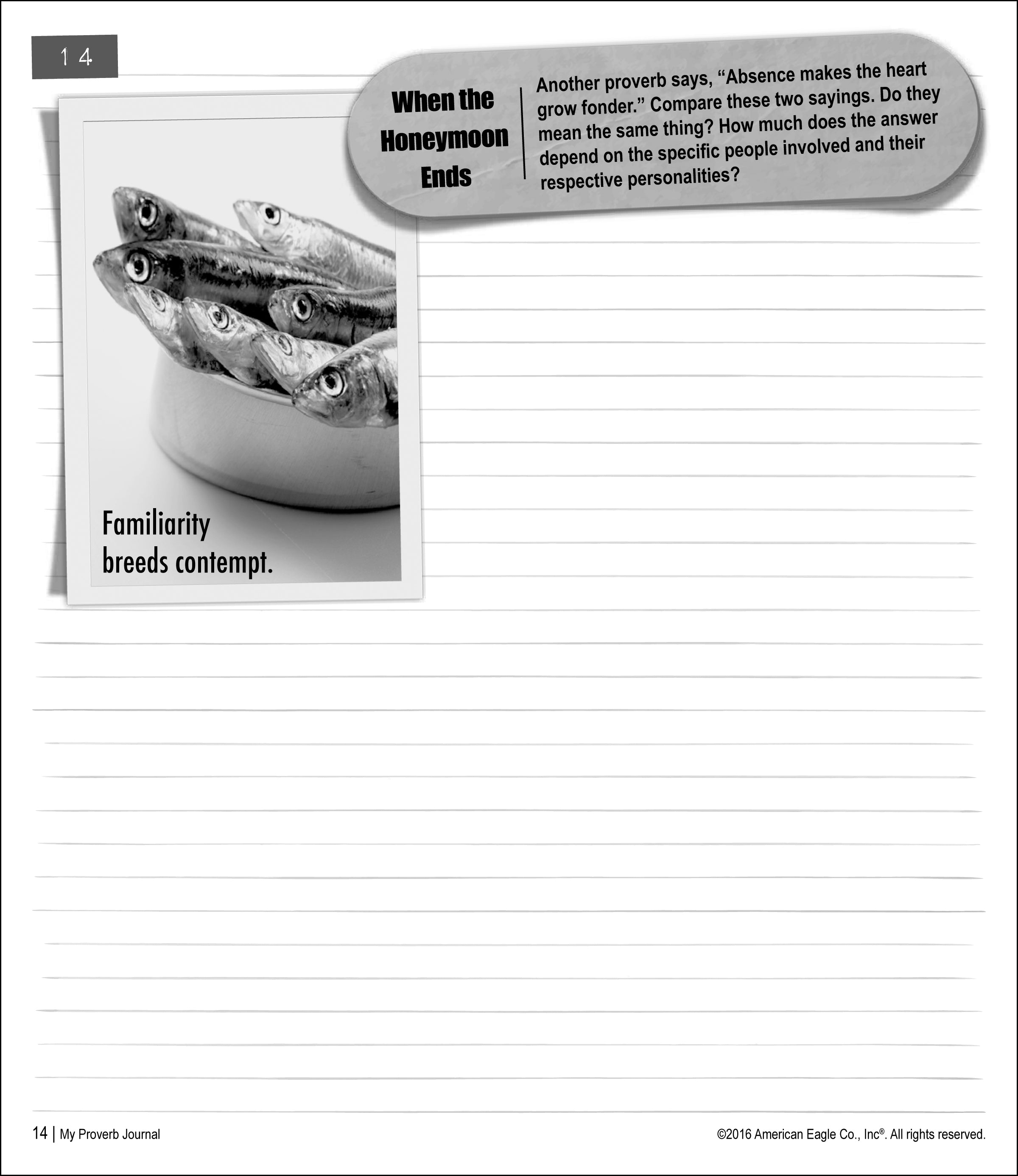 Proverb-inspired writing prompts will engage even the fussiest writers because these prompts speak directly to your students. Have fun using the prompts as warm-ups or as starting points for extended essay writing projects. Written with Common Core State Standards in mind, these prompts address ELA Standards for Writing 1, 2, and/or 3; grades 9–10 and 11–12.
