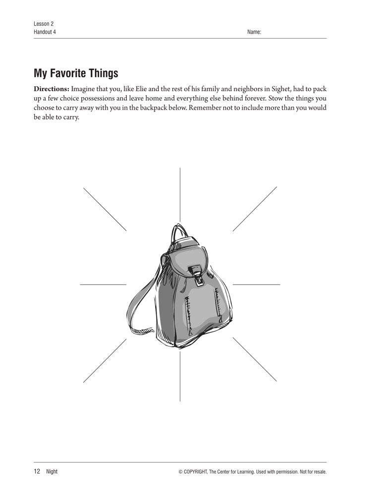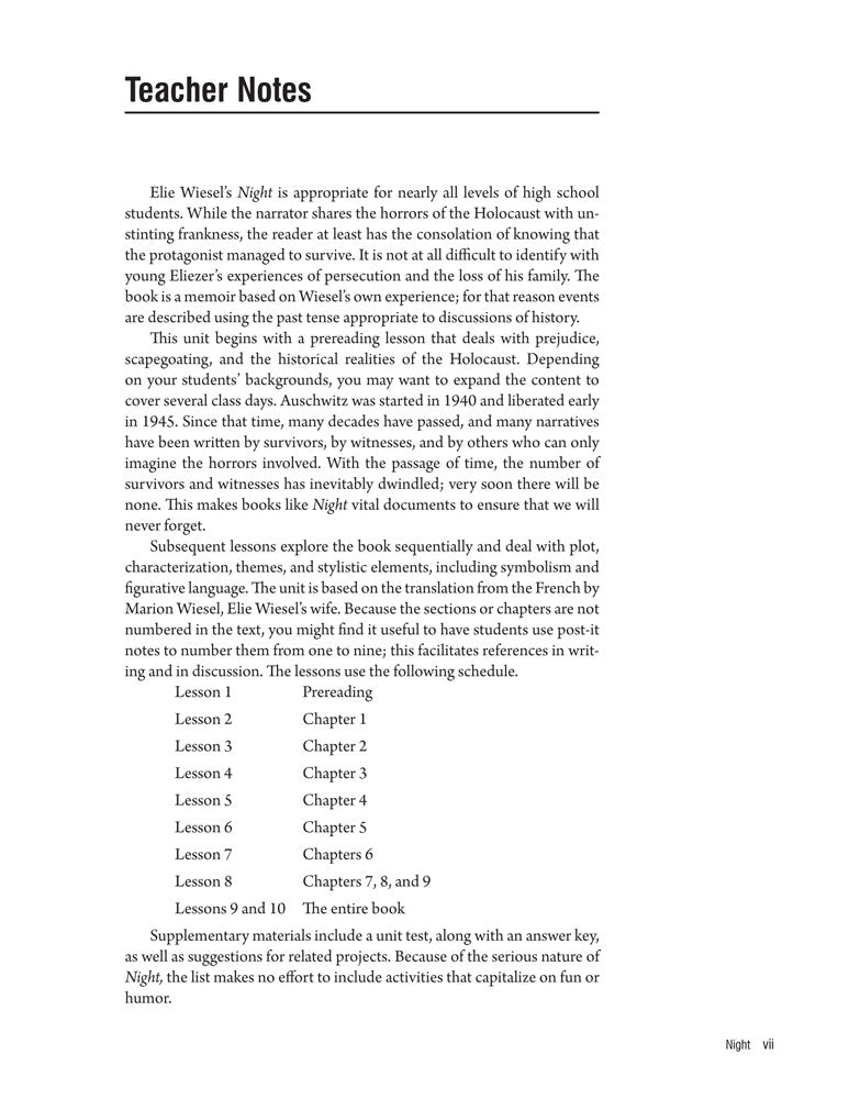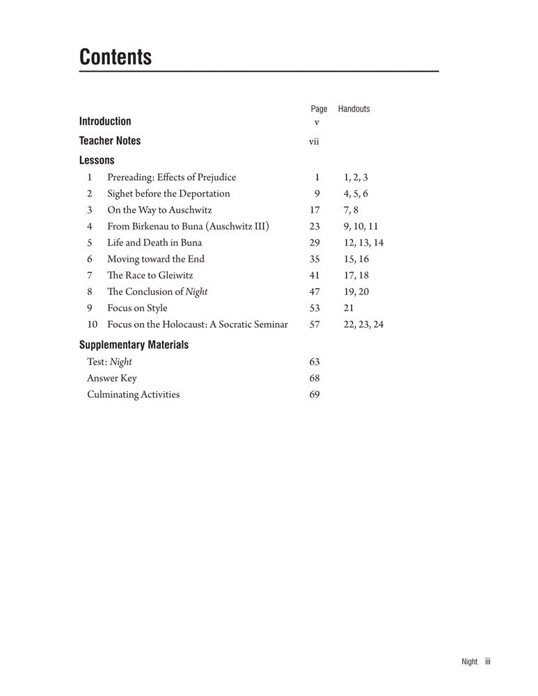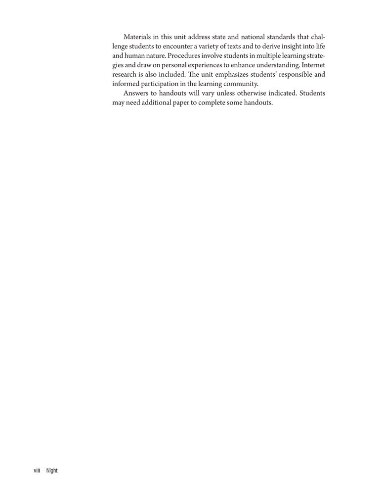 Night Teaching Unit - 10 Lesson Plans Plus 24 Student Handouts and Activities