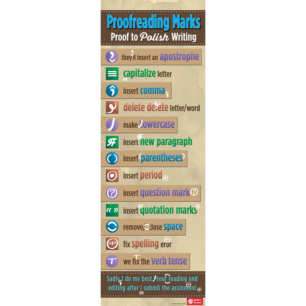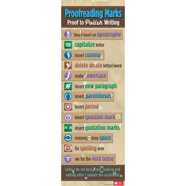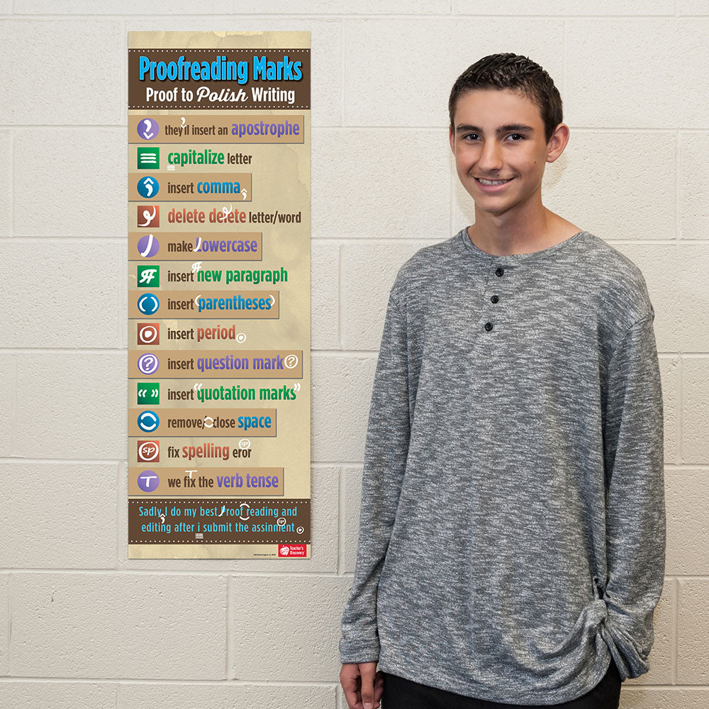 Whether your students are reviewing the paper you returned or peer editing their classmates' writing, this student reference tool helps students polish writing. The poster features the most common proofreading marks and illustrates how to use each mark.