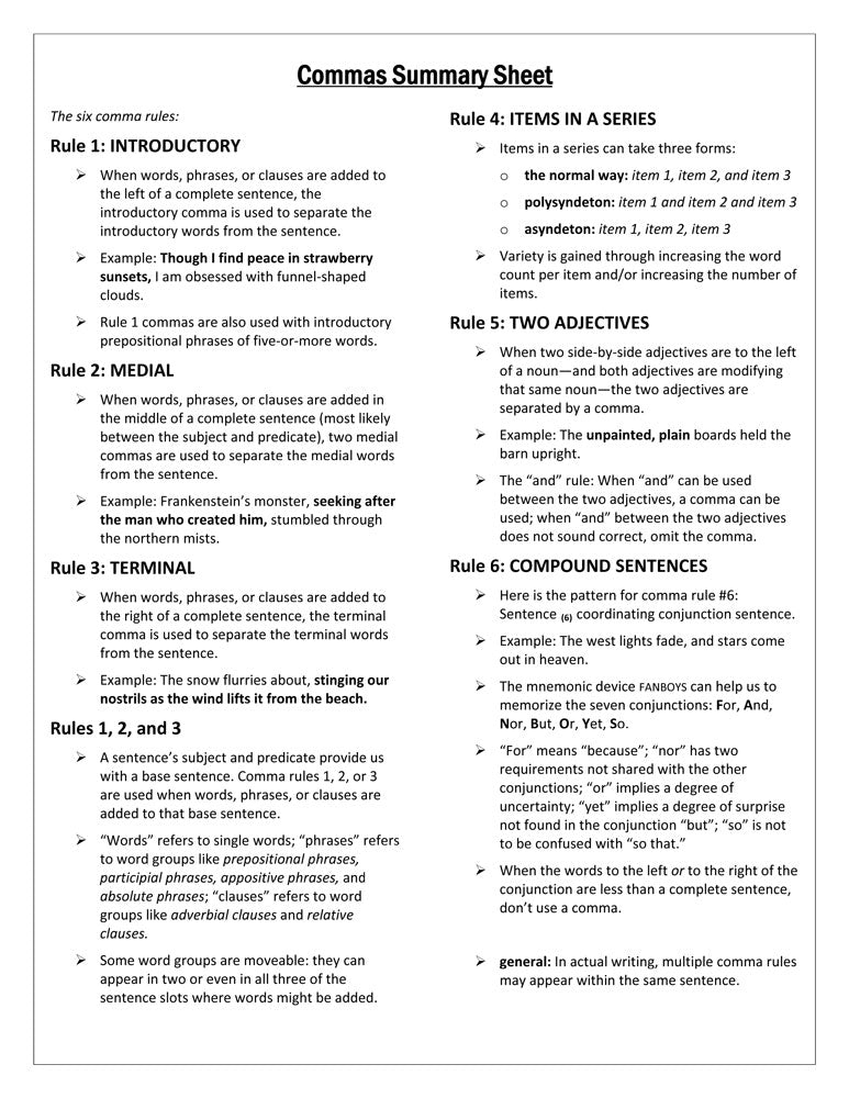 Punctuating with Six Sentence-Based Comma Rules