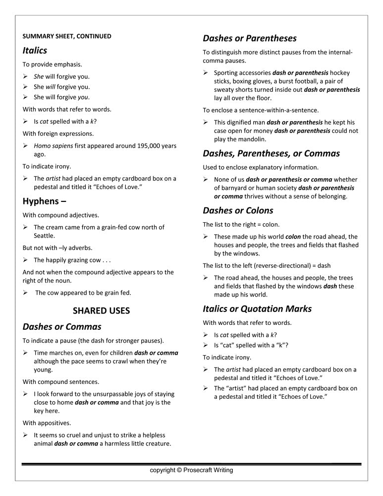 Gaining Mastery of Dashes, Hyphens, Parentheses, Brackets, Ellipses, and Italics