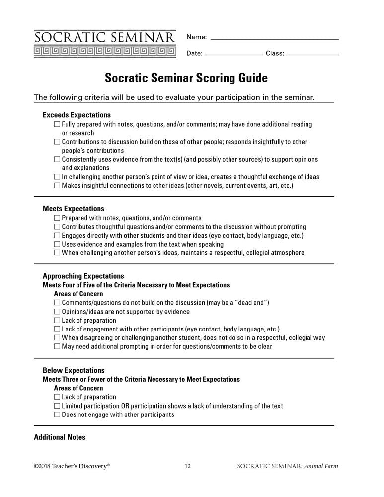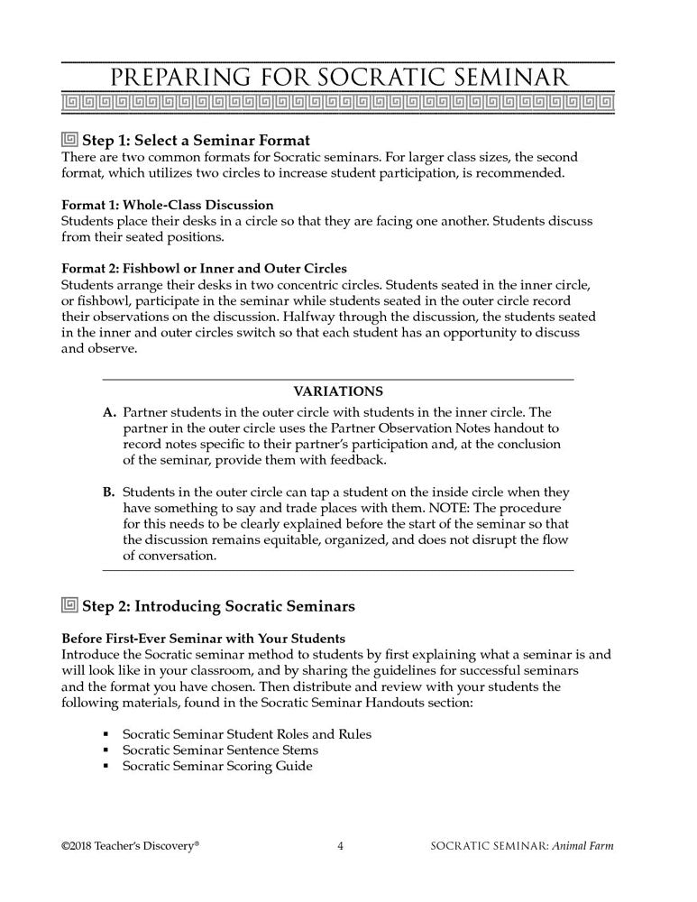 The Socratic Seminar book features five seminar topics unique to the classic novel, Pre-Seminar Texts and handouts, and Guiding Questions to help students prepare for the discussion.