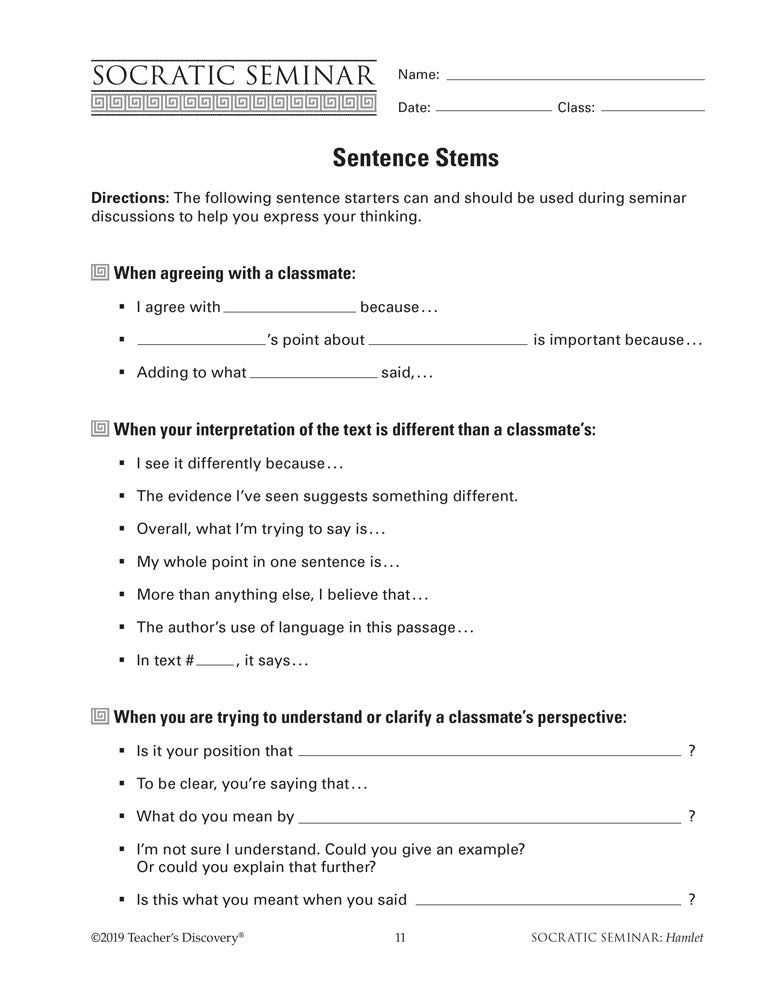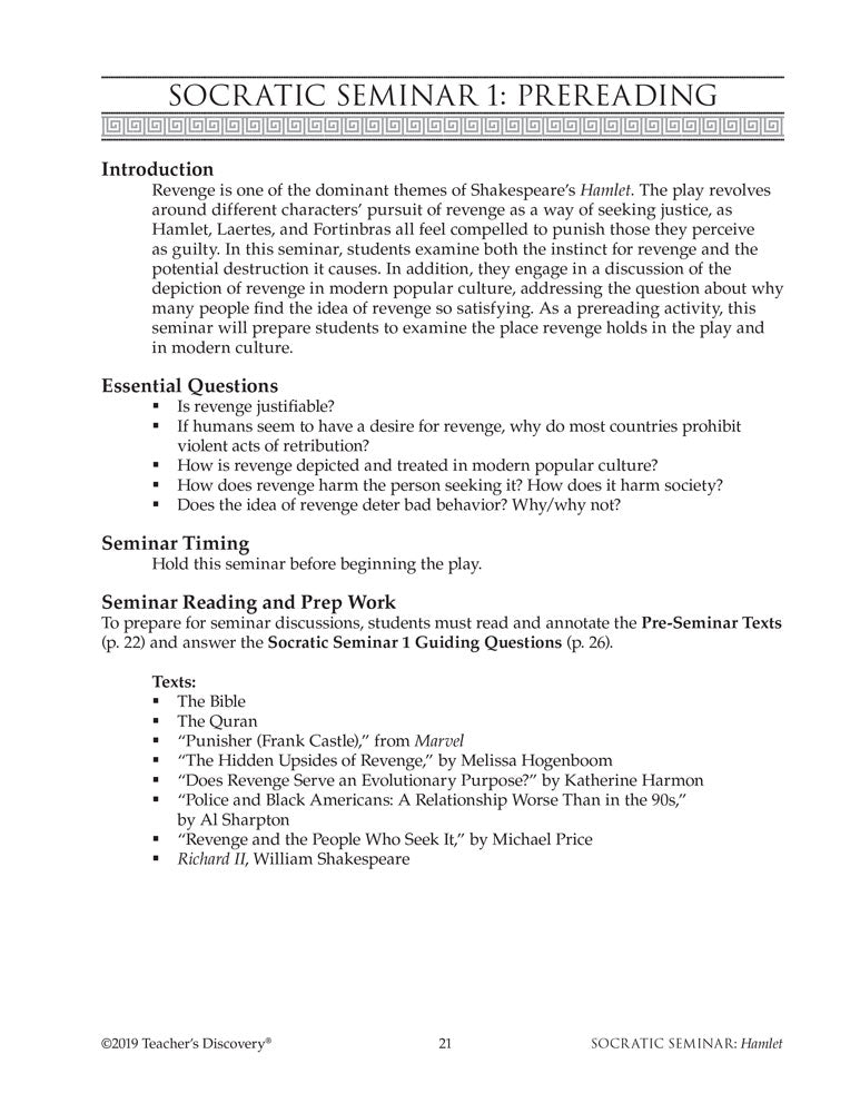 Socratic Seminar: Hamlet Book