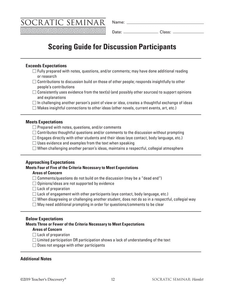 - Seminar Scoring Guides for student discussion participants and observers