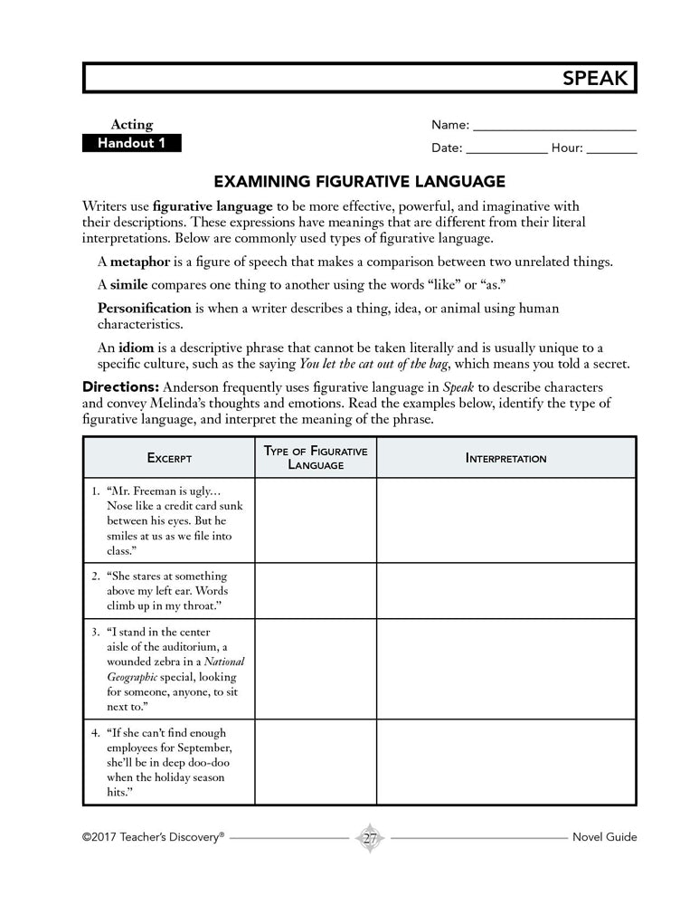 Speak Novel Guide Teaching Unit with Lesson Plans, Activities, Discussion Questions, and Much More