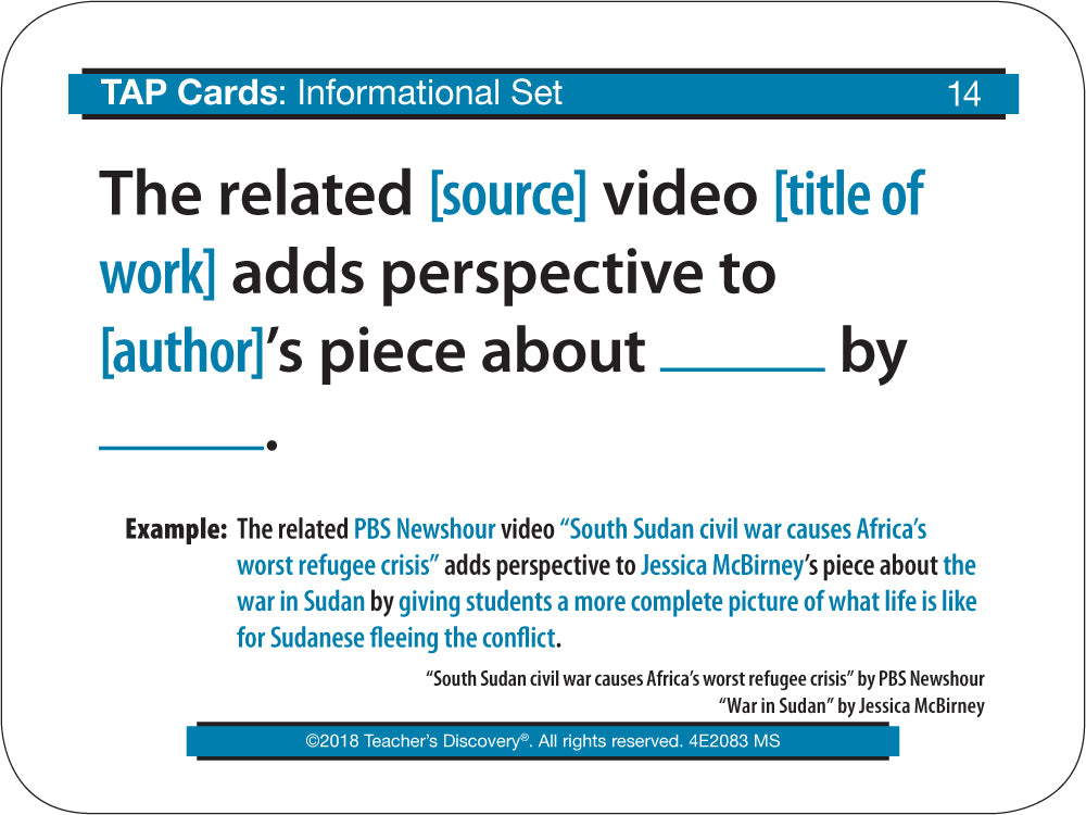 TAP Cards Press Your Students to Engage Deeply with Informational Text