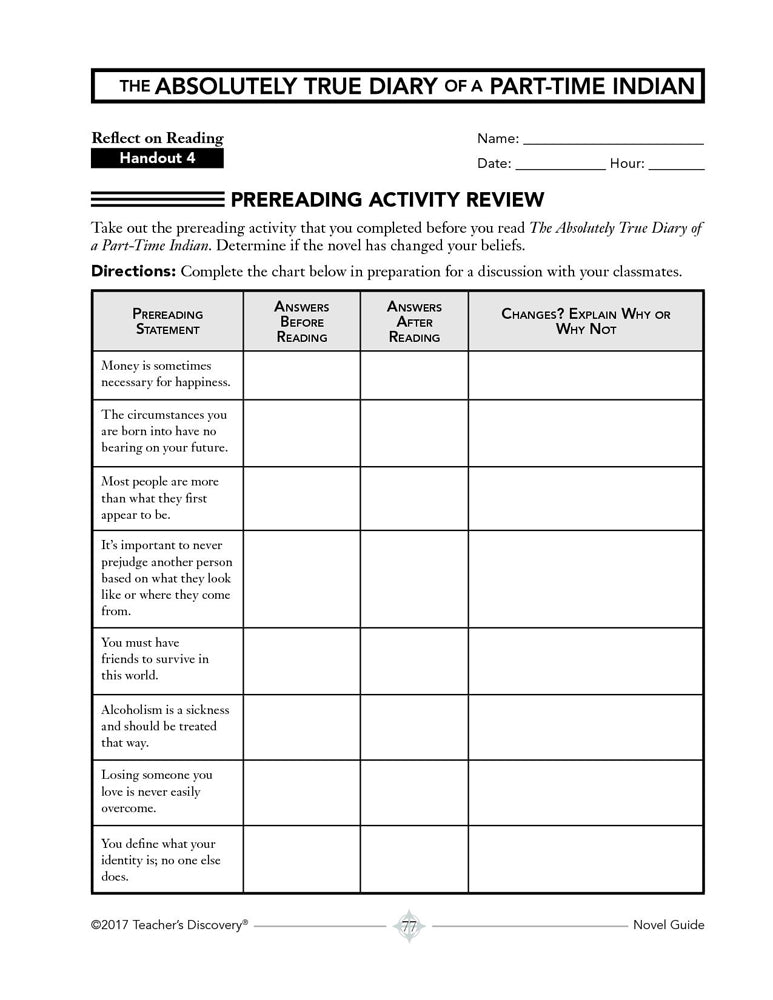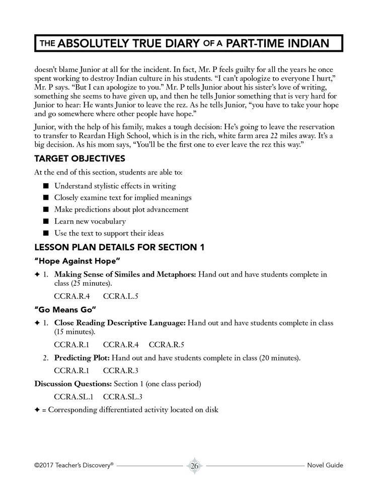 • The Absolutely True Diary of a Part-Time Indian Novel Guide Book Download