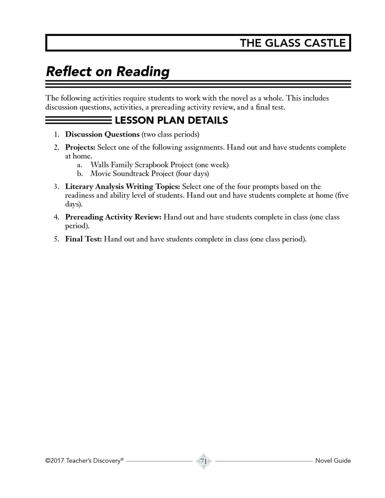 The Glass Castle Novel Guide Teaching Unit with Lesson Plans, Activities, Discussion Questions, and Much More