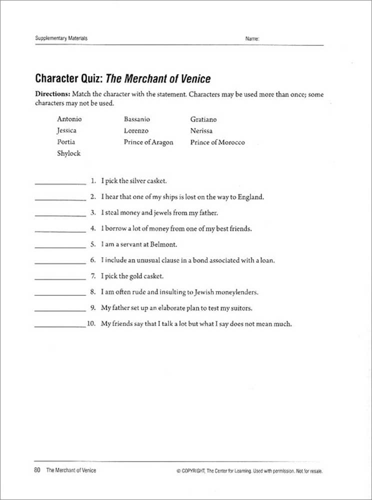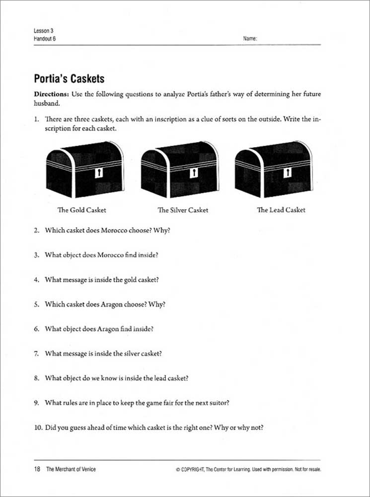 Reproducible. 8 x 11 inches. Spiral-bound.The Merchant of Venice Curriculum Unit