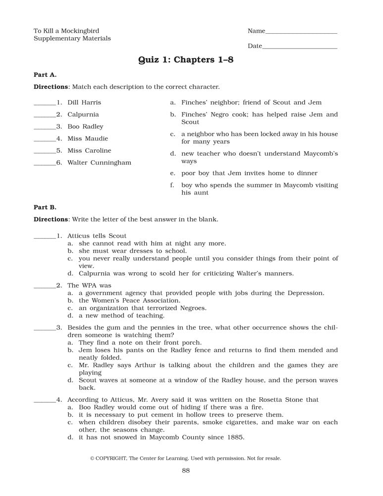 To Kill a Mockingbird Curriculum Unit
