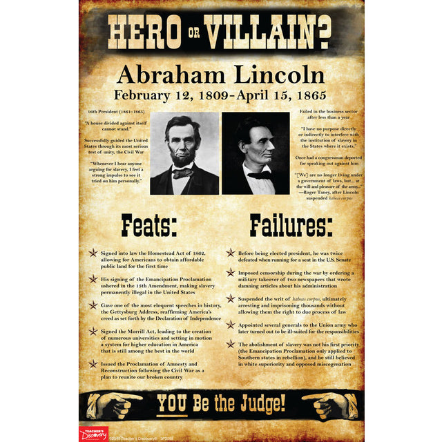 Abraham Lincoln: Hero or Villain? Mini-Poster is backordered and will ship as soon as it is back in stock.