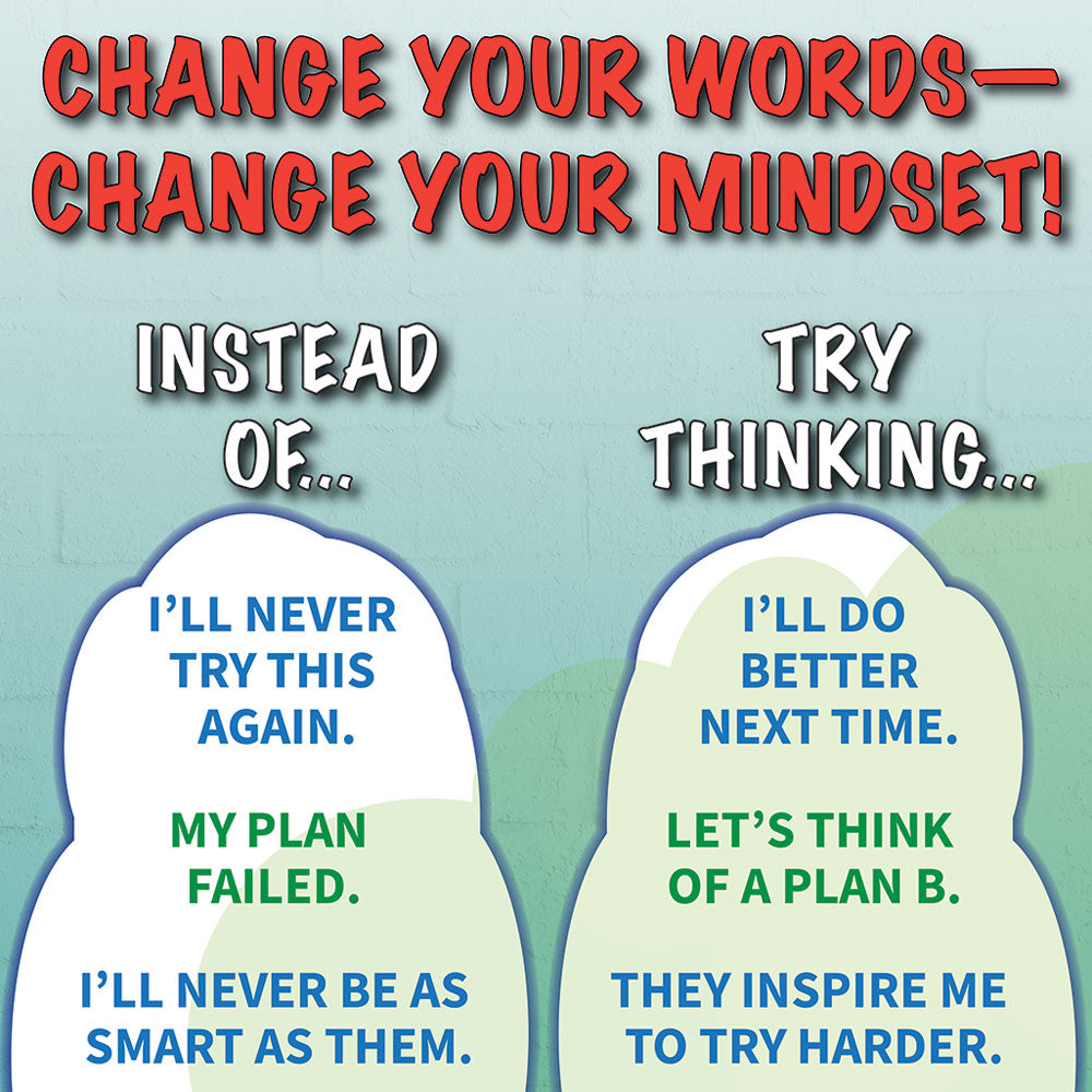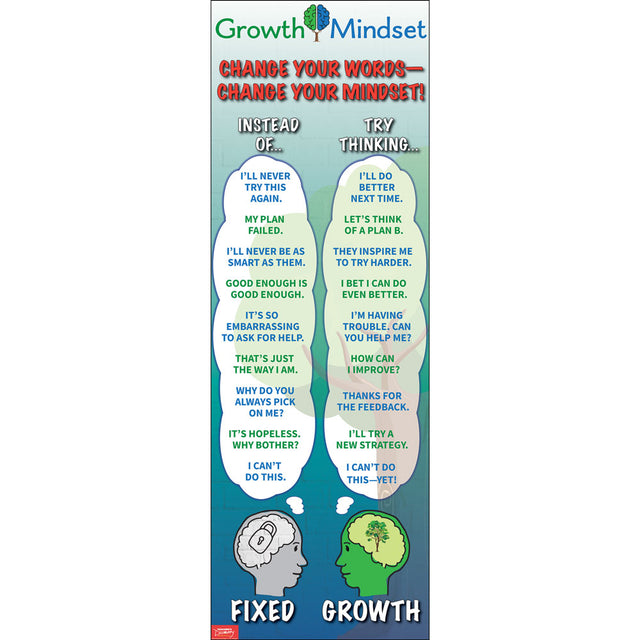 Many students feel they are stuck in a negative mindset where their beliefs are static. However, these beliefs CAN change—they just have to alter their way of thinking. This poster displays 10 fixed mindset ways of thinking, along with 10 new ways of thinking to spark a growth mindset.