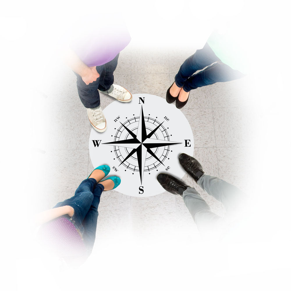 With a compass rose decal on the floor of your room, students learn hands-on directional positioning and you have a classroom management tool. Take this compass rose in any direction for loads of extra activities—your imagination is the only limit.