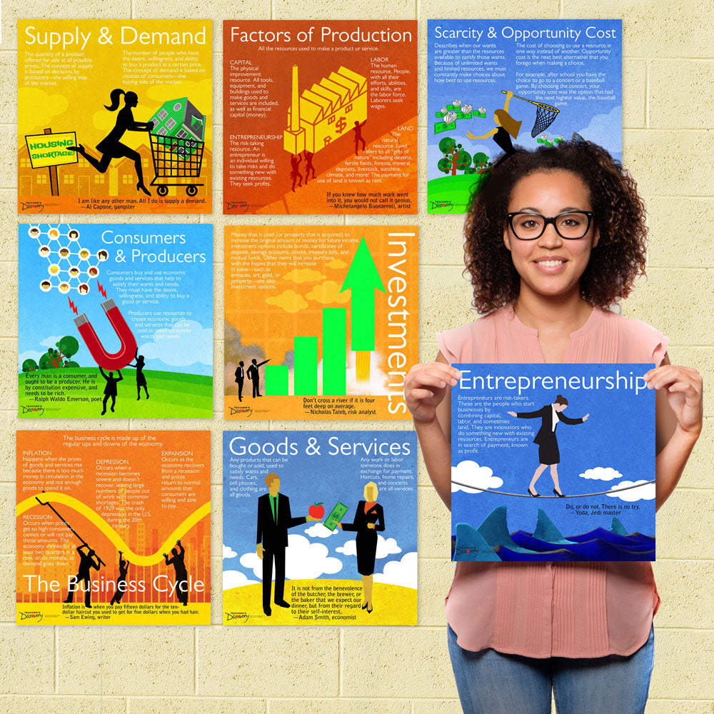 Help break the ice with your students on major economics concepts and vocab with this illustrated mini-poster set.