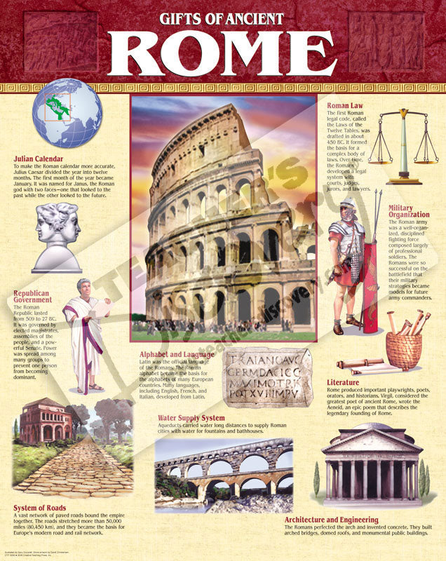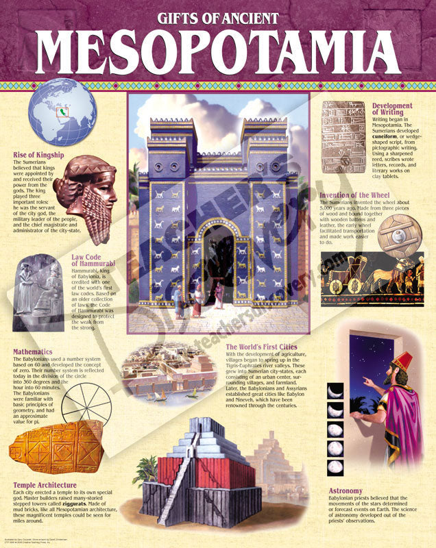 Gifts of Mesopotamia, Rome, Ancient Greece, Ancient Egypt, and Ancient China! Which civilization gave us what? Information at a glance, plus a timeline at the bottom of each poster. Great decor when teaching ancient civilizations.