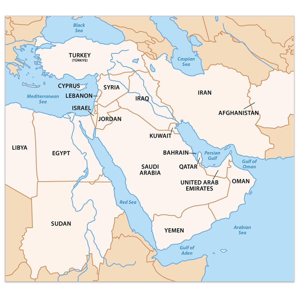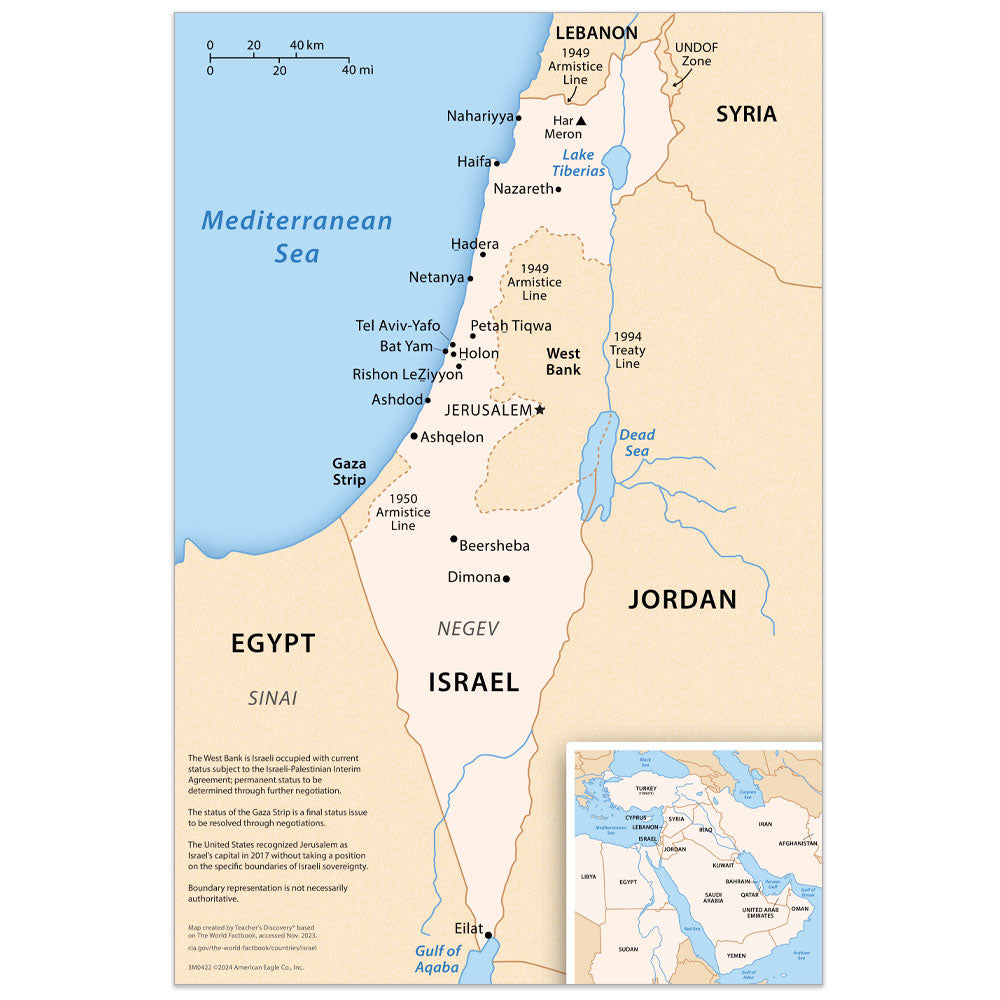Based on the official map from The World Factbook, this map shows current and historical borders, plus an inset of the Middle East for greater context. Includes FREE projectable map download, plus a study guide with background information on conflicts in the Middle East, activities, and helpful links.