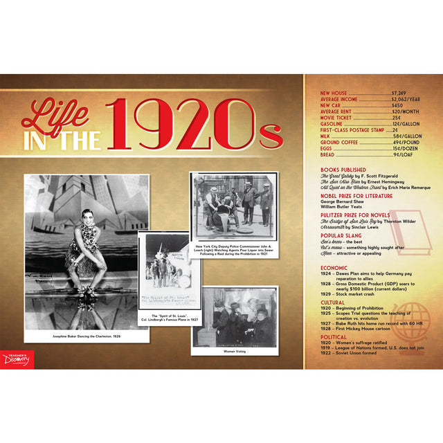 In the 1920s you could buy a loaf of bread for 9¢ and it only cost 12¢ a gallon for gas to drive to the store! Real photos, historical events, and cost-of-living comparisons show students how generations before them lived.