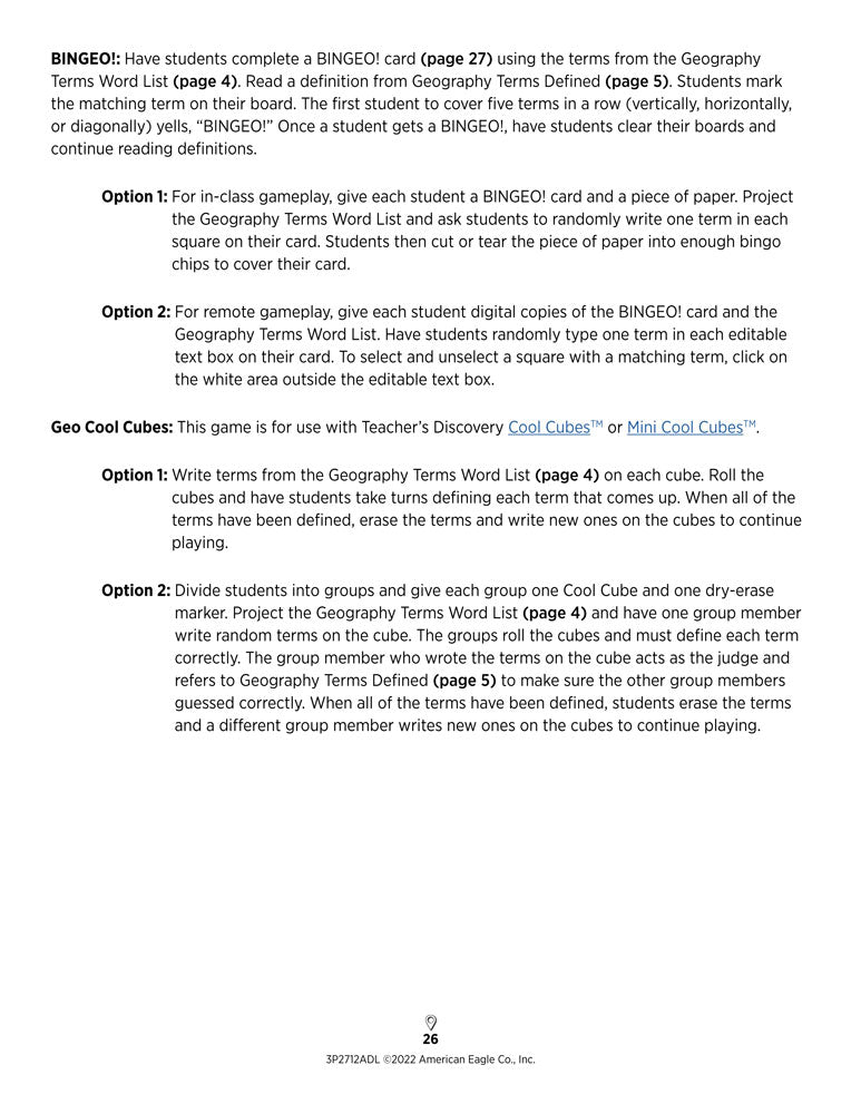 Supplement your geography lessons with over 20 flexible interactive activities, such as vocab practice, mapping, hands-on projects, and classroom games.