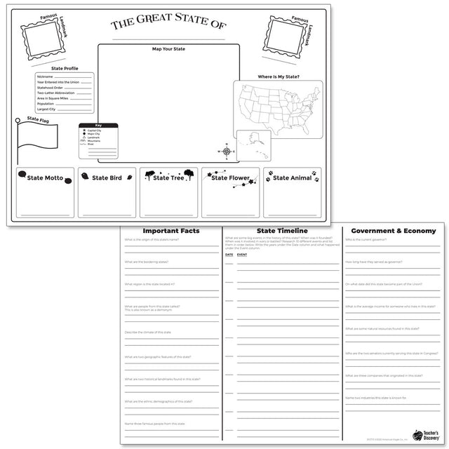 Which famous person is from your state? Which state flag is not in the shape of a rectangle? Students uncover more facts about the landmarks, government, economy, and history of their state.