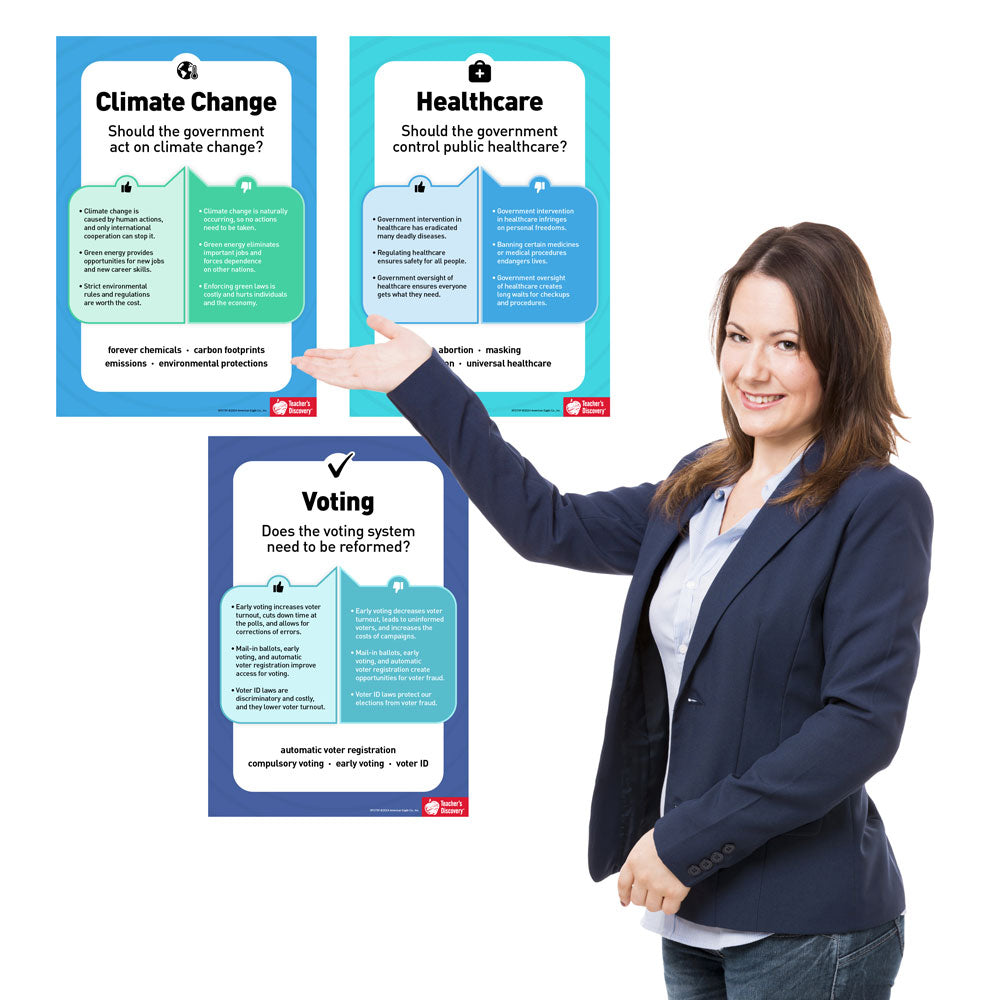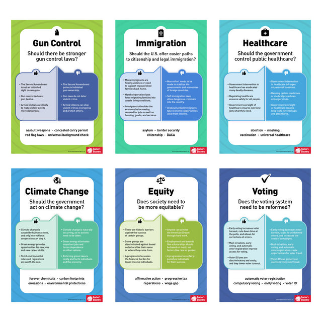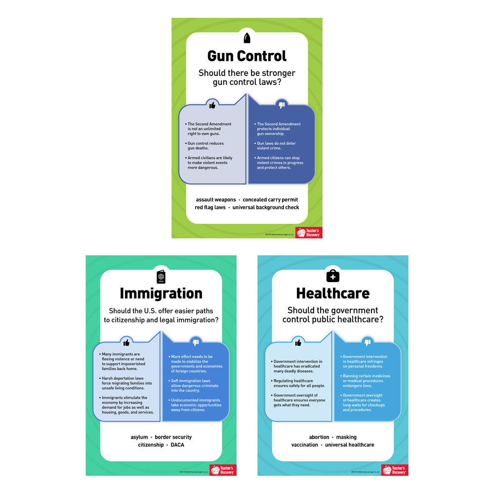 Looking for a way to engage your students in critical thinking and discussion on controversial topics? These posters are designed to encourage students to think deeply about the issues that matter to them. From gun control to climate change to immigration and more, these posters cover a range of topics sure to get your students talking with thought-provoking questions and prompts to help guide classroom discussions and encourage critical thinking. Includes free activity download (PDF).