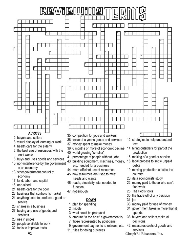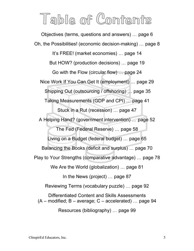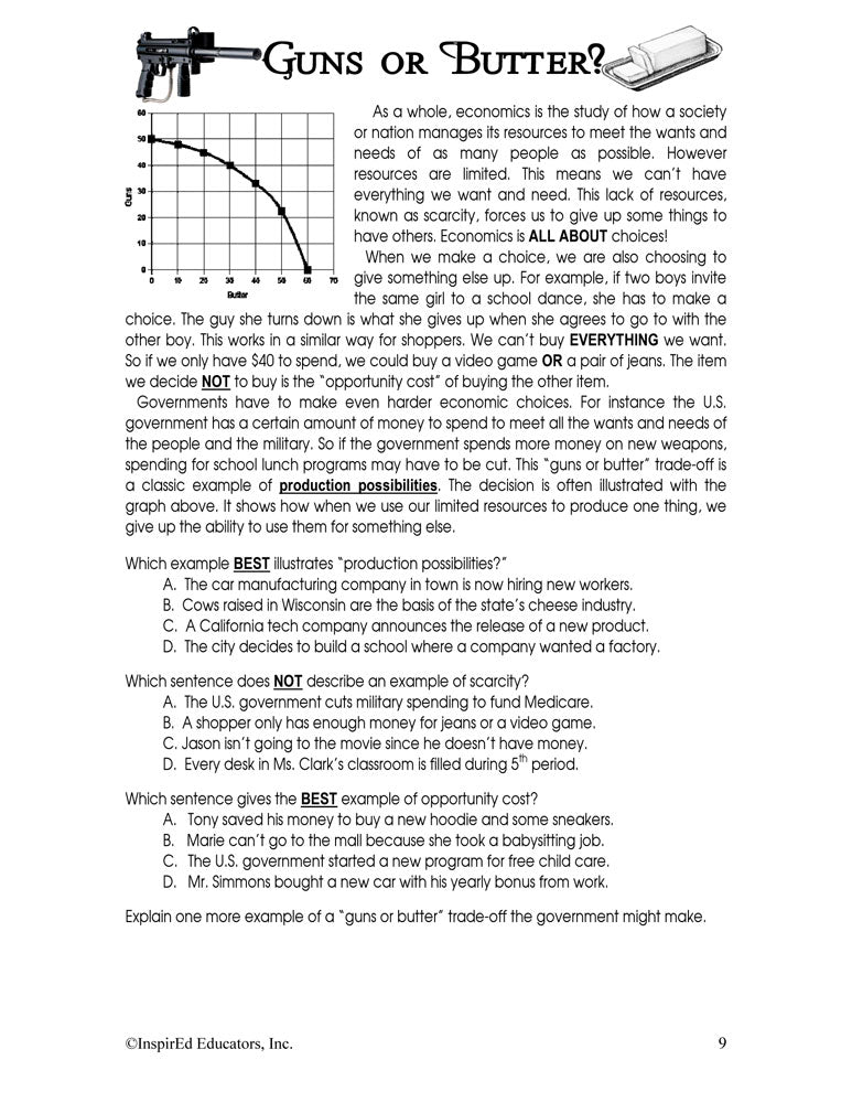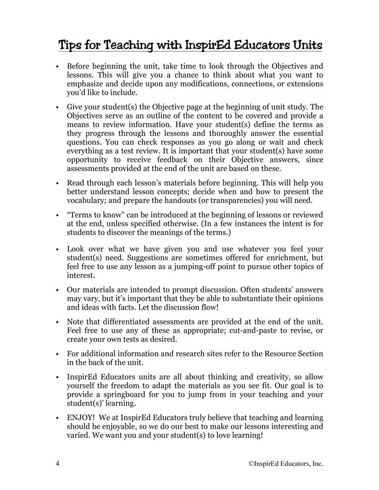 A variety of engaging, student-centered activities and lesson plans examine nation's economy. This unit consists of complete and easy-to-use lesson plans along with study guides and differentiated tests. Like all InspirEd materials, they incorporate critical and creative thinking, test-taking skills, reading and writing in the content area, and much more!