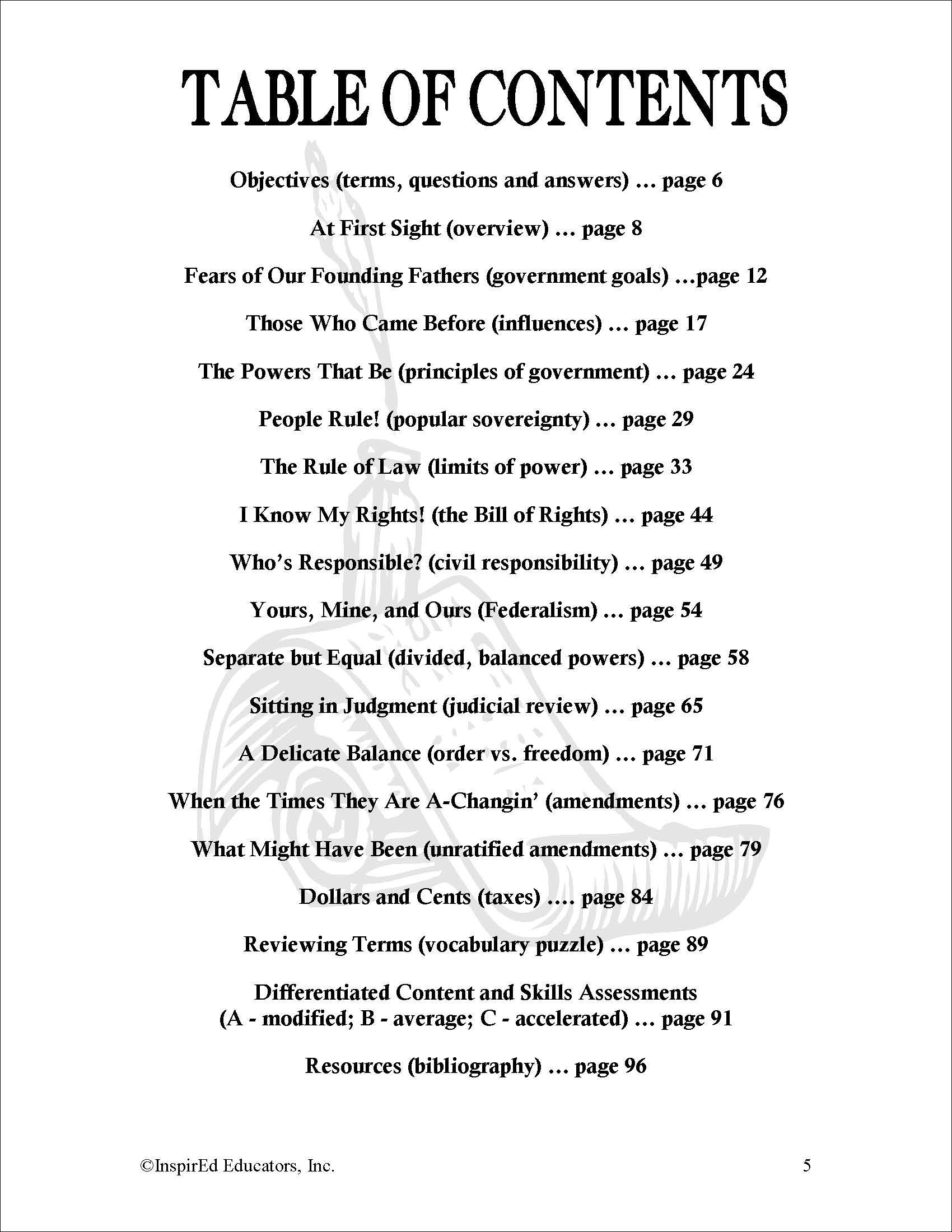 - Subject matter includes: Principles of Government, Limits of Power, Civil Responsibility, Order vs. Freedom, Amendments, Taxes, and much more
