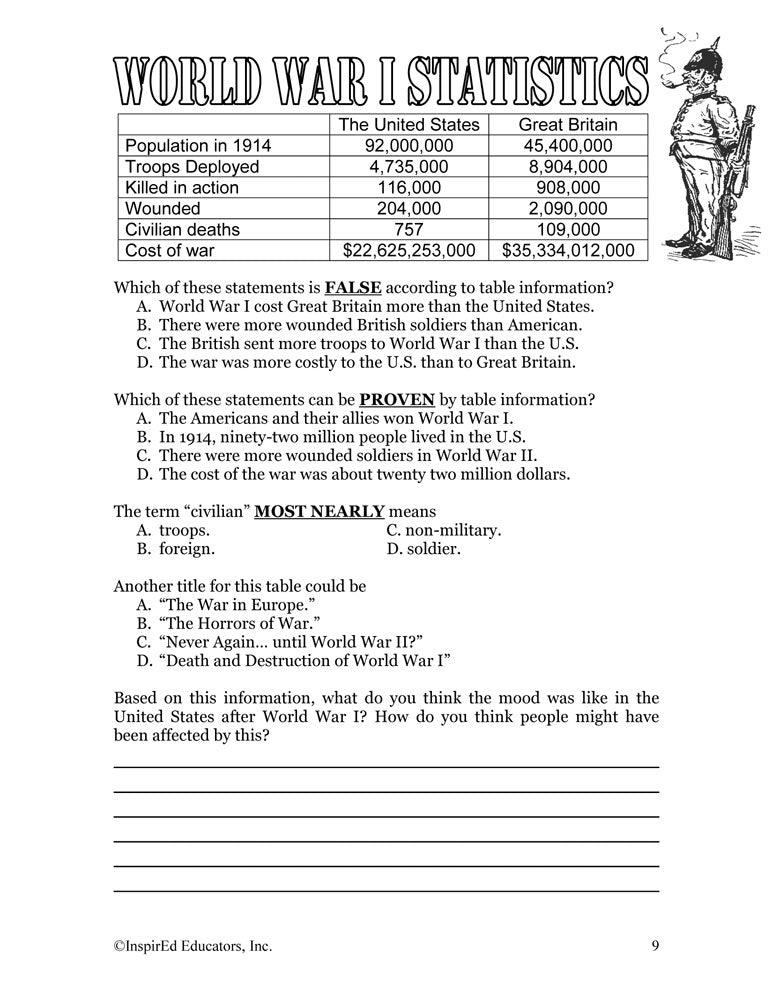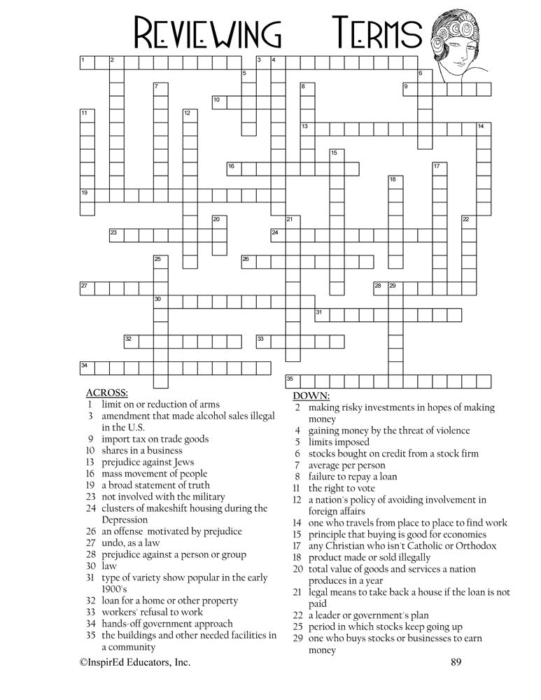 Topics include: foreign policy, the post-war business boom, flappers, 1920’s culture, Prohibition, the Great Migration, prejudice, Al Capone, Groucho Marx, the stock market crash, life in the Depression, the Dust Bowl, Herbert Hoover, and the New Deal. A section on the current U.S. economy asks students to analyze remarks from President Barack Obama as well as economic news.