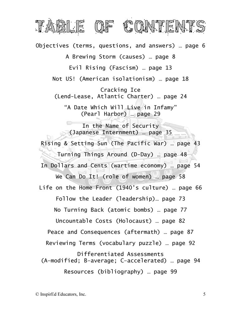 Teach your students both content and skills with complete, engaging lesson plans. Topics include: Pearl Harbor, War in the Pacific, turning points, home front, atomic bombs, and more.