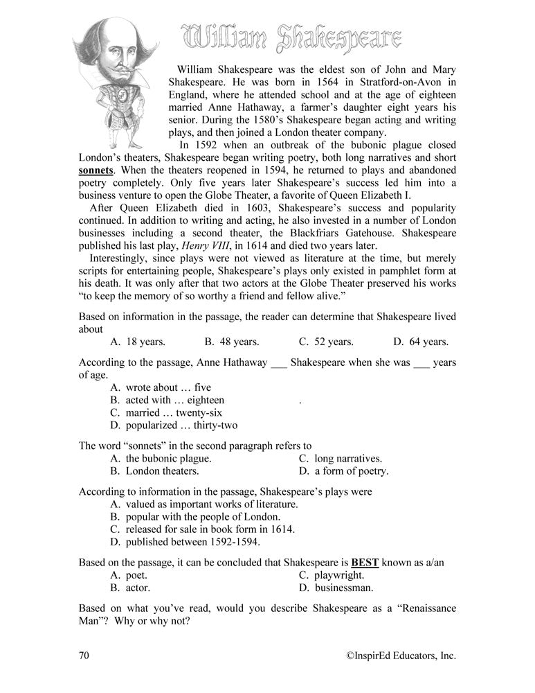 As with all InspirEd materials, they incorporate and encourage critical and creative thinking, test-taking skills, reading and writing in the content area, and much more!