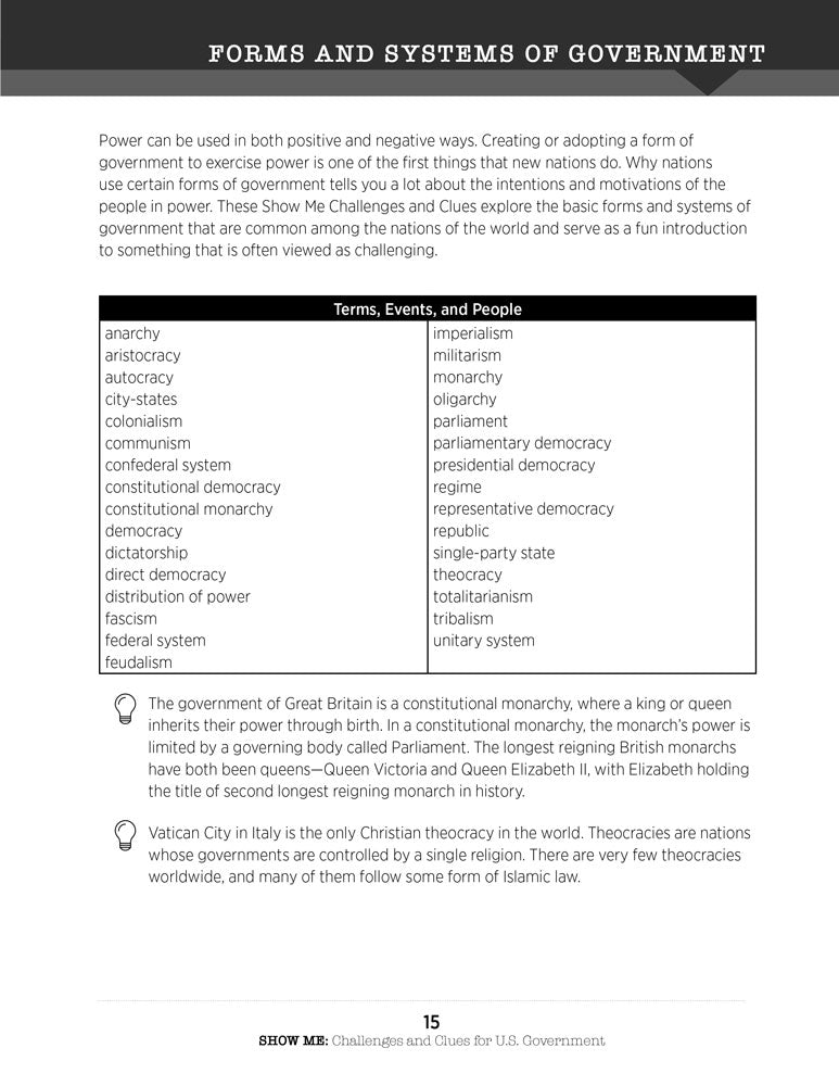 Show Me Challenges and Clues for U.S. Government Book - Show Me Challenges and Clues for U.S.Government Book Download is backordered and will ship as soon as it is back in stock.