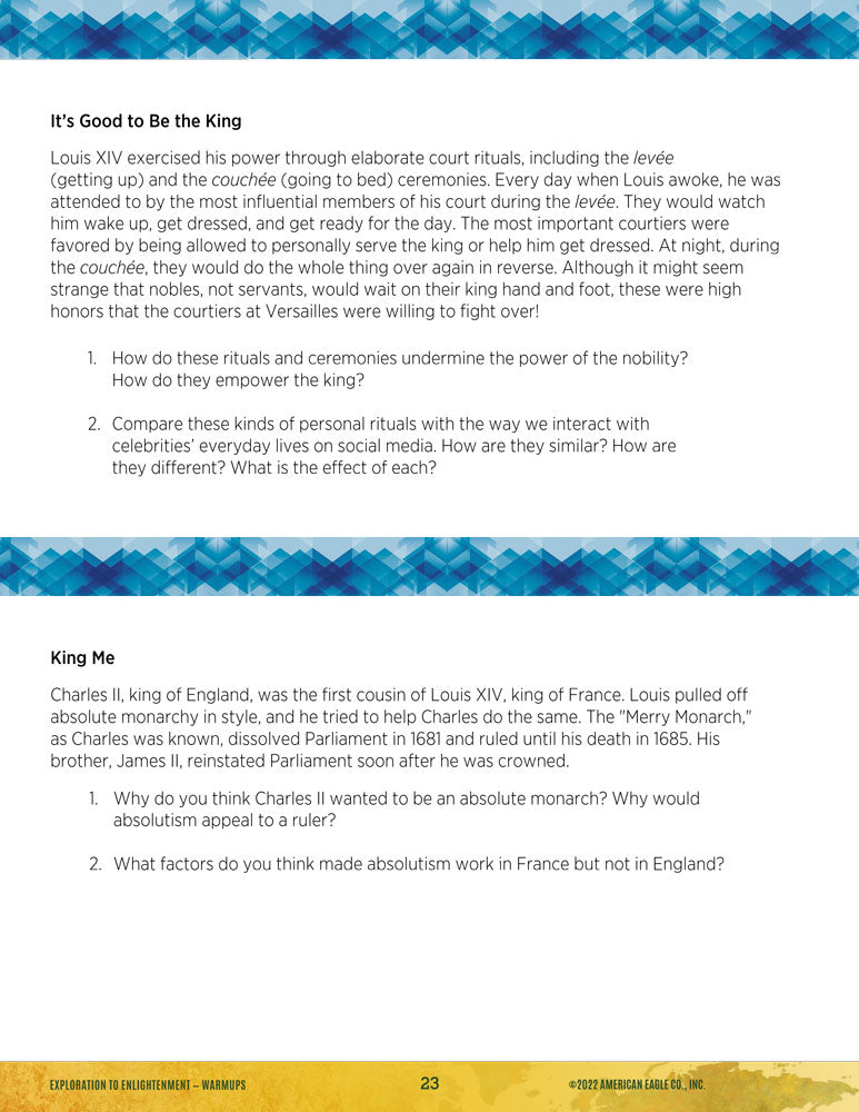- Ready to implement! No textbook, no problem. A historical context reading with rich imagery and bolded key vocab terms starts each unit.