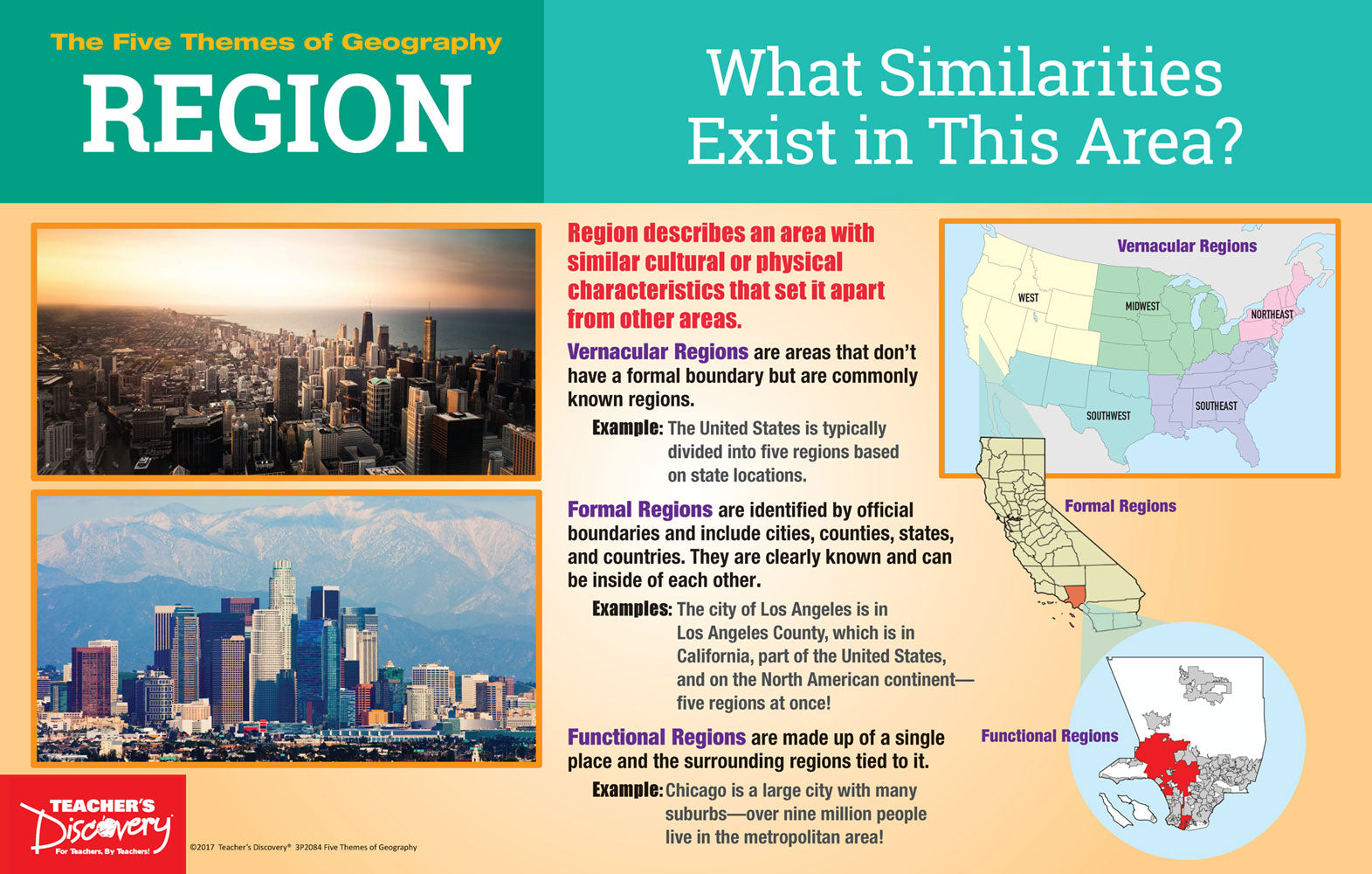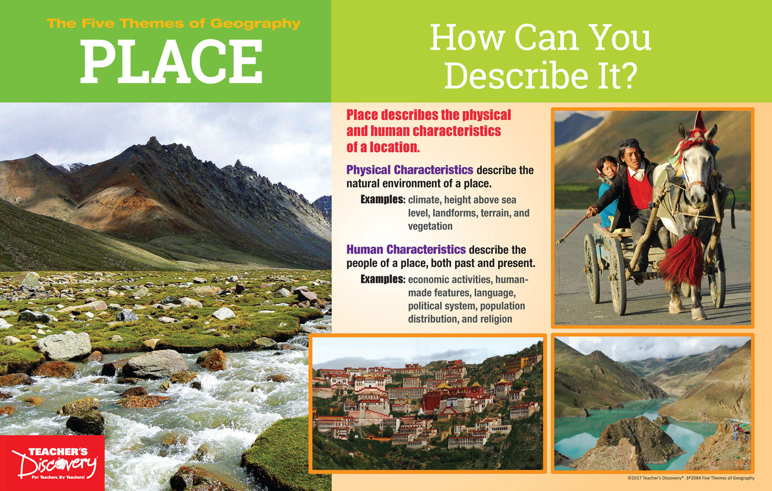 Explore each of the five themes with examples and photographs from around the world! Teach your students how the five themes of Location, Place, Region, Movement, and Human-Environment Interaction all fit together in the eyes of a geographer.