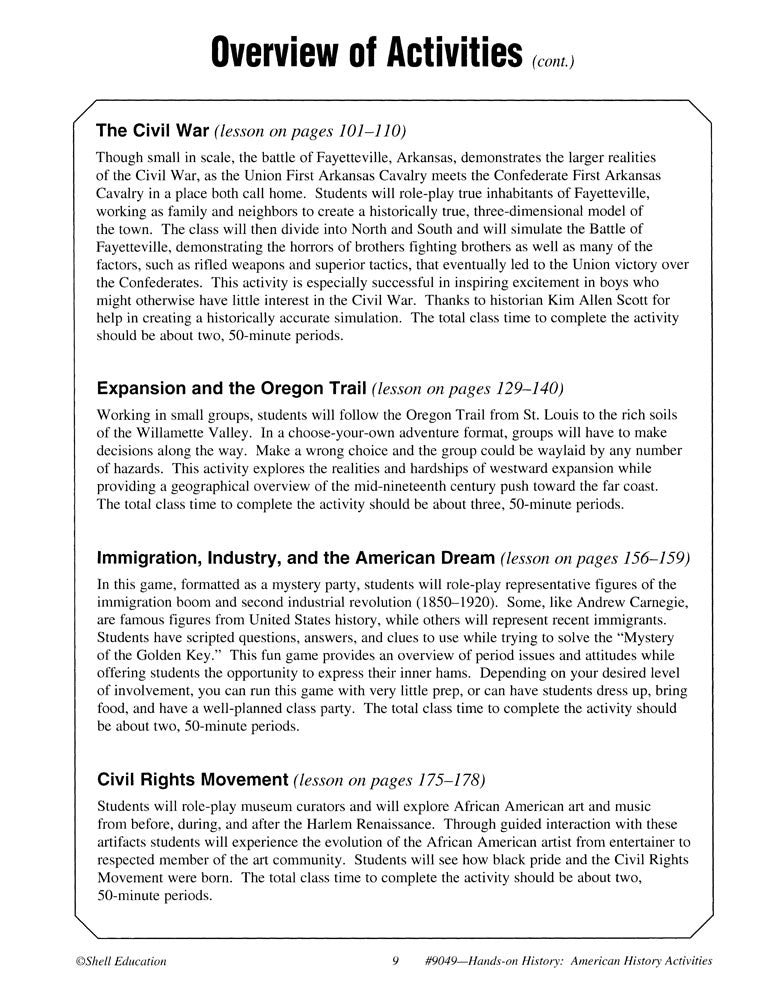 Spark your students' interest with interactive activities. This book includes game-formatted activities for American history topics. The activities are standards based and include grading rubics and ideas for assessment. Encourages teamwork, creativity, reflection, and decision making. You take an active approach to teaching while inspiring your students to make their own explorations of history.