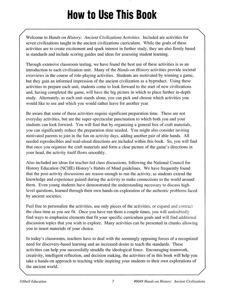 Hands-On History: Ancient Civilizations Activities Book