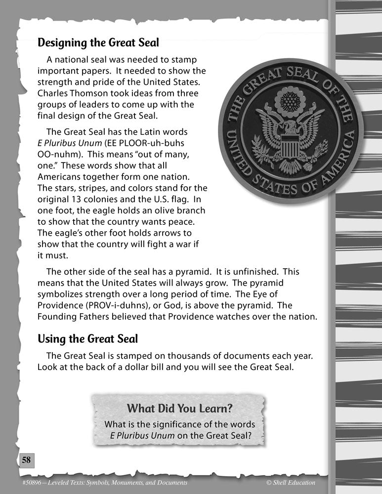 Explore the Symbols, Monuments, and Documents of Our History in Four Different Leveled Texts!