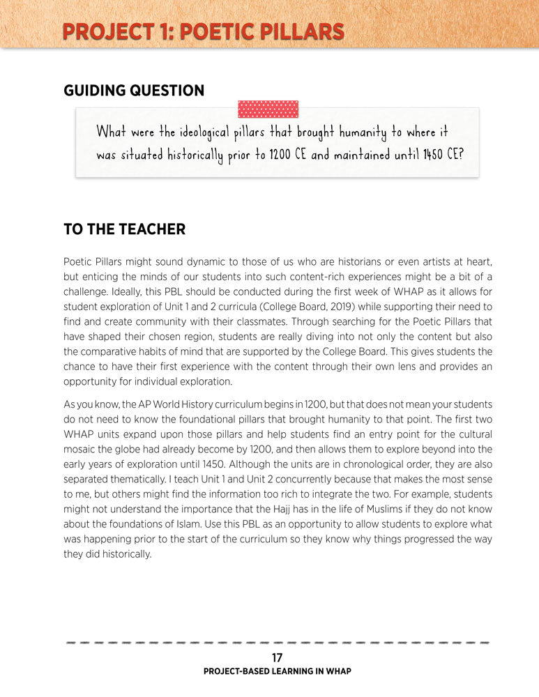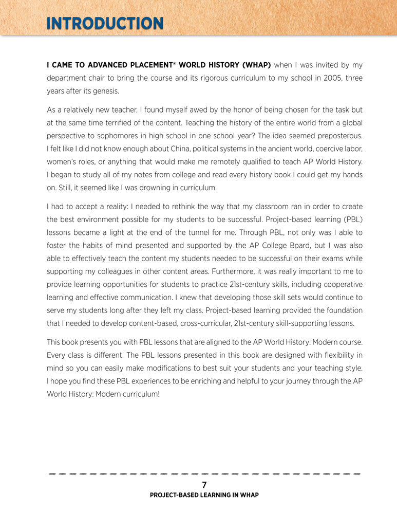 Teaching the history of the entire world from a global perspective to teens in only one year? Sounds daunting, right? Project-Based Learning makes AP® World History: Modern manageable AND fun! Step-by-step instructions show you how to implement project-based learning in your classroom, and seven hands-on projects—all aligned to AP, C3, and Common Core standards—give you a place to start: