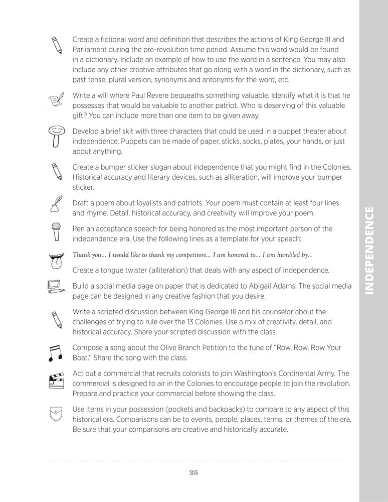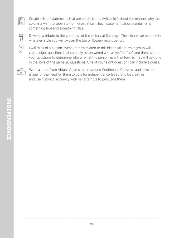 Create a skit about Manifest Destiny. Write a poem about the Oregon Trail. Hook students with multiple learning styles in a series of cooperative learning activities that span all major eras of U.S. history and can be woven seamlessly into your regular unit or make for an exciting game format!
