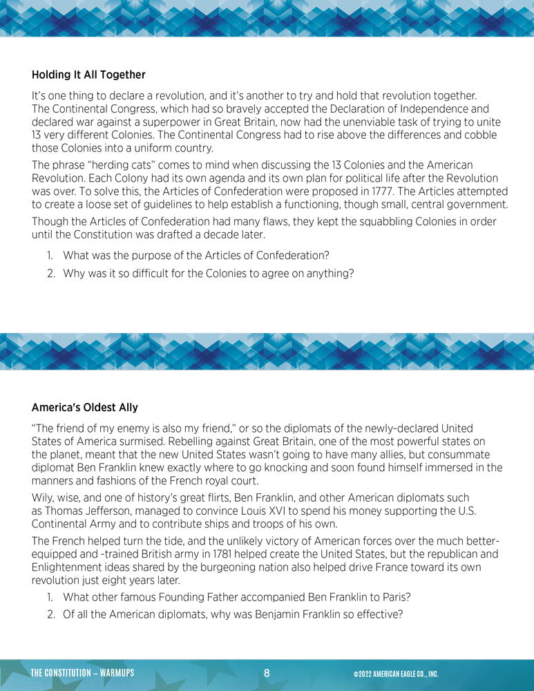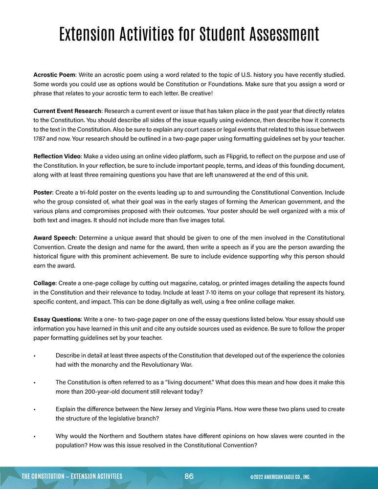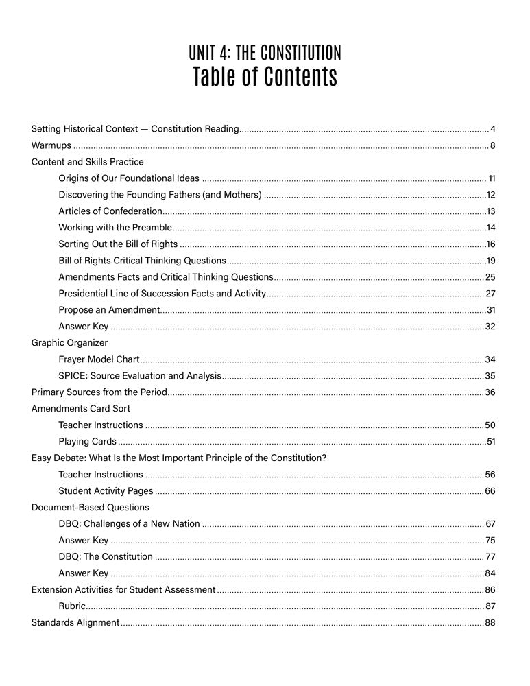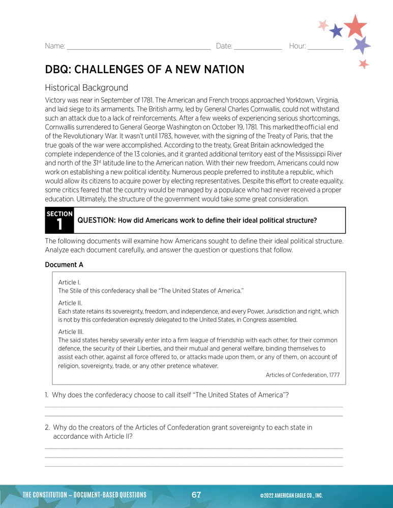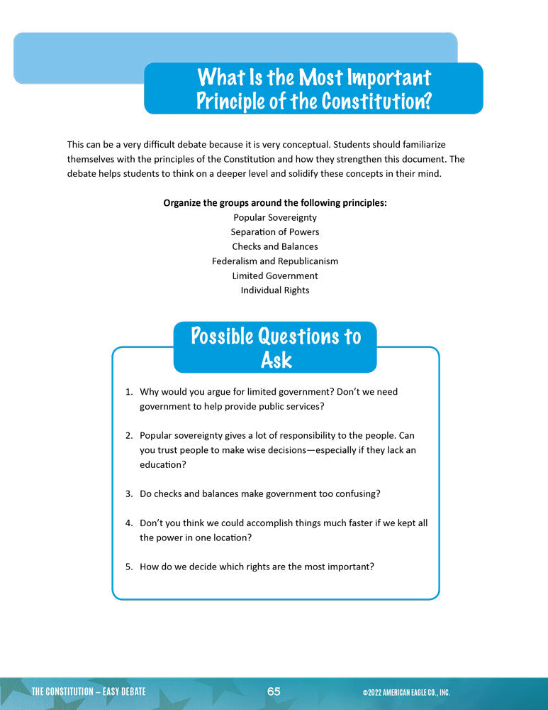- Activities include: Easy Debate: What Is the Most Important Principle of the Constitution?, Document-Based Questions: Challenges of a New Nation, and Document-Based Questions: The Constitution.