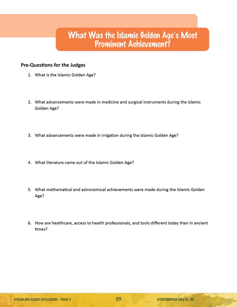 - Features an interactive activity, Prove It! Persuasion Station: What Was the Islamic Golden Age’s Most Prominent Achievement?